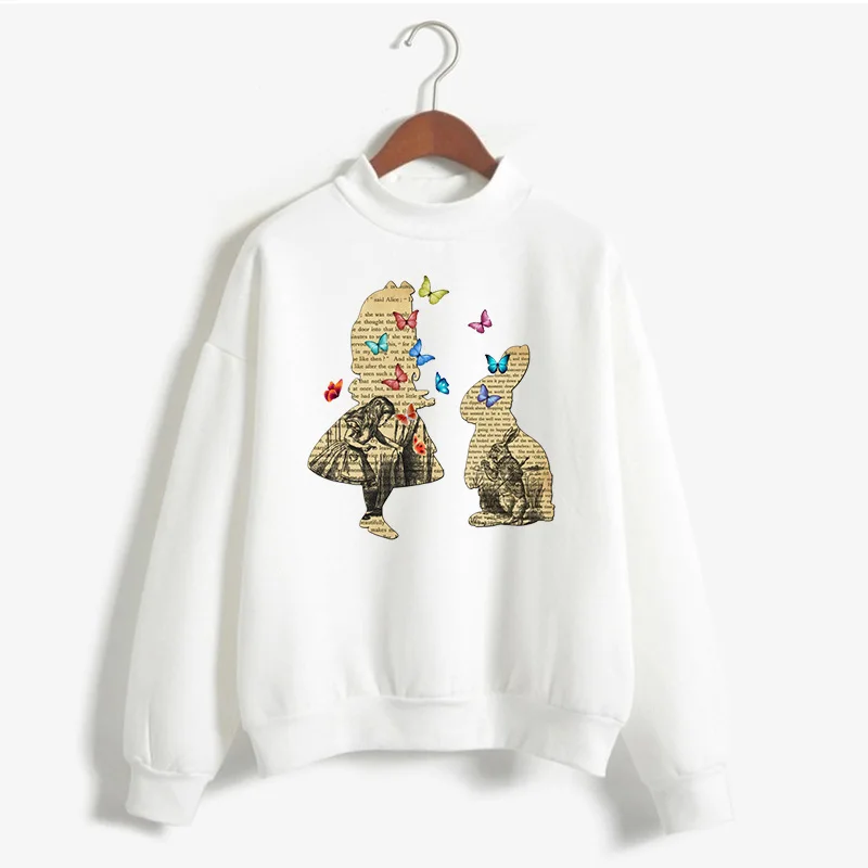Алиса в стране чудес пуловер с принтом женские эстетические девочка и кролик Tumblr толстовка с рисунком Harajuku Эстетическая одежда с капюшоном