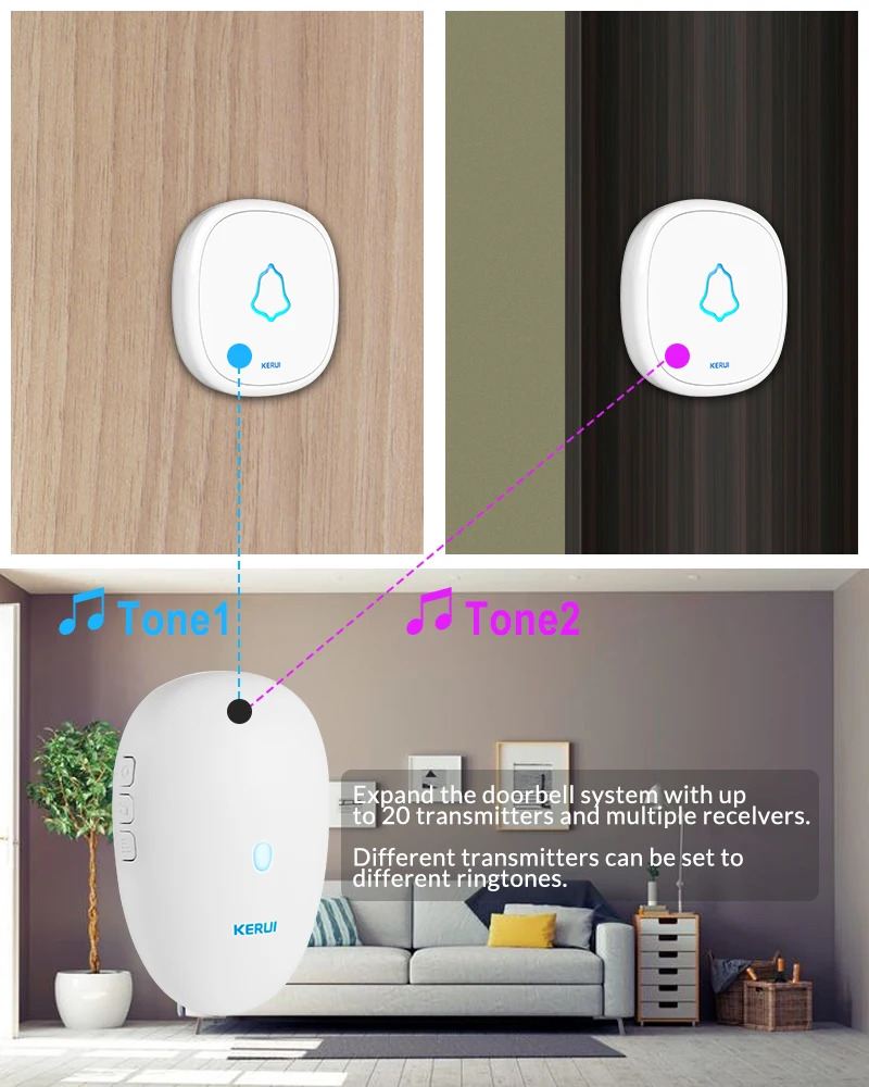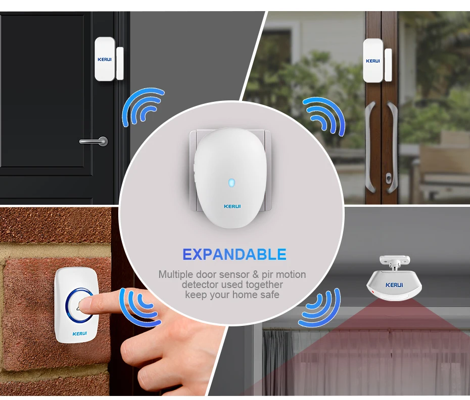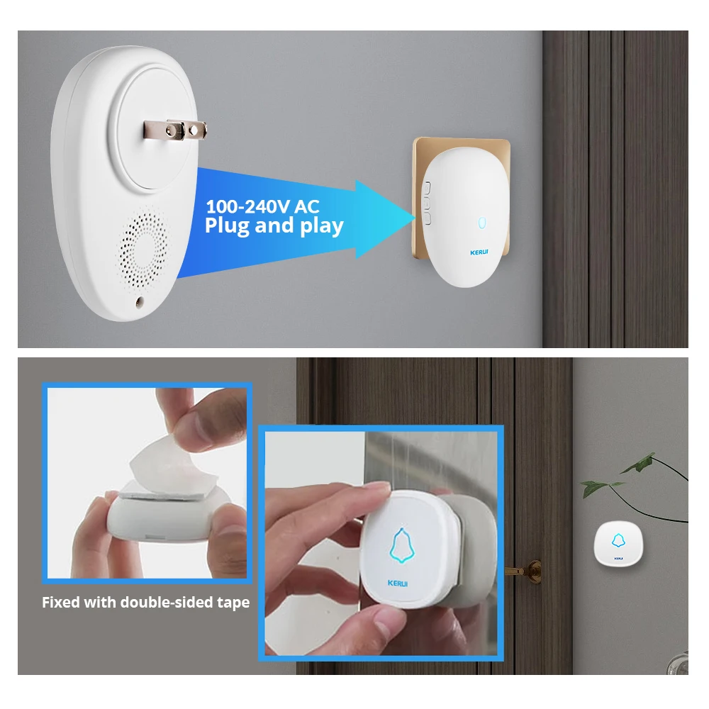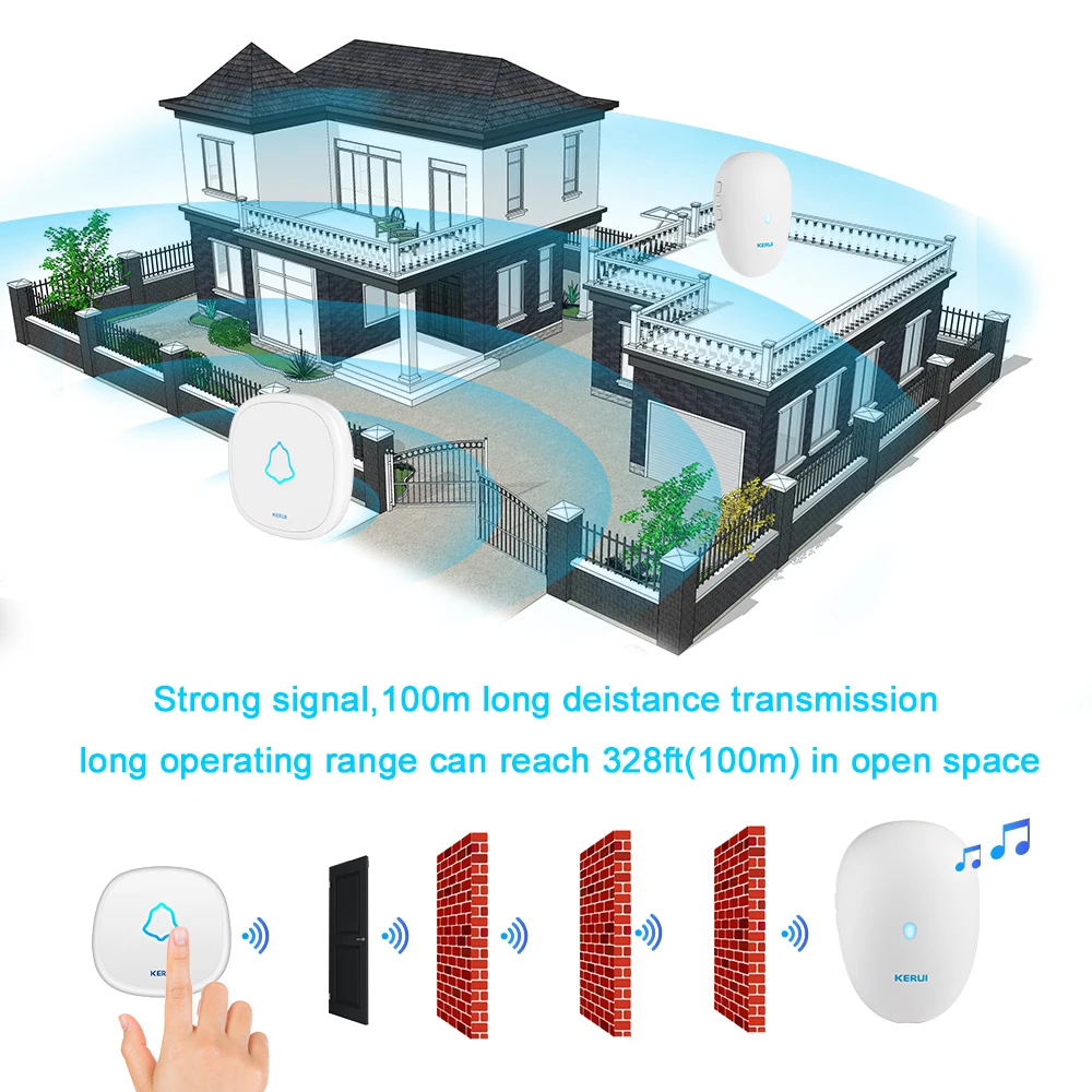 Беспроводной дверной звонок KERUI M521, комплект домашней безопасности, междугородний, добро пожаловать, большой объем, белый, черный, дверной звонок с водонепроницаемой кнопкой F52