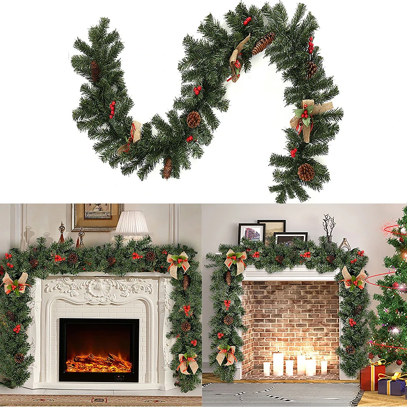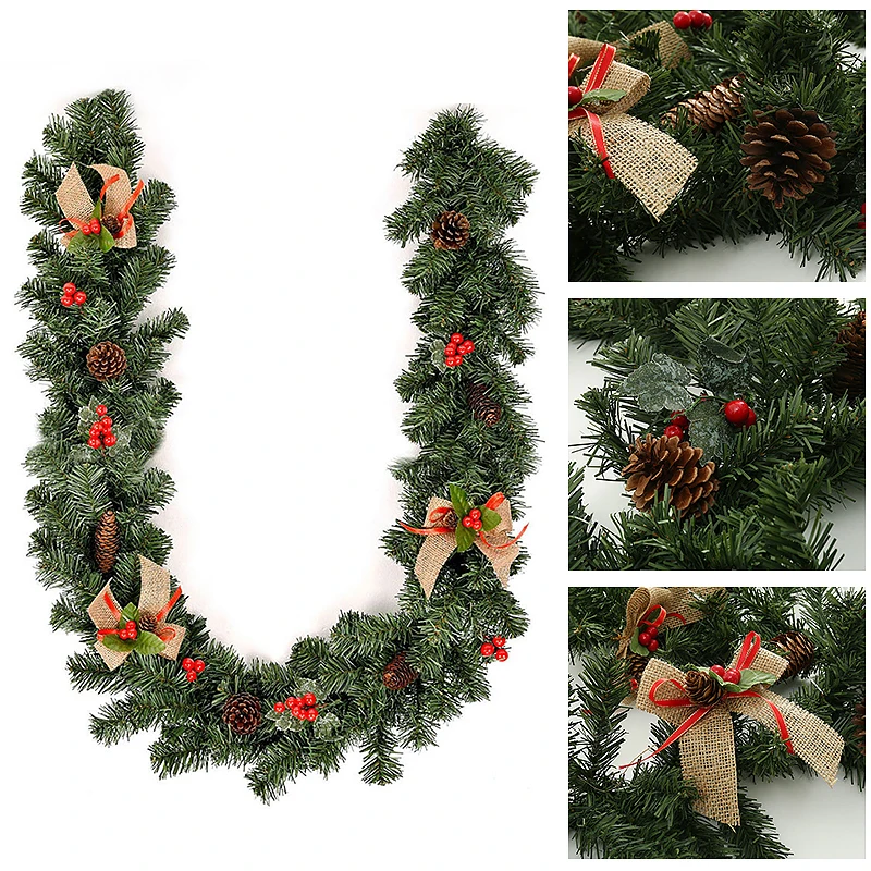 Новое Рождественское украшение, зеленая Рождественская гирлянда, венок для дома, Новогодняя и Рождественская вечеринка, сосновые подвесные украшения из ротанга