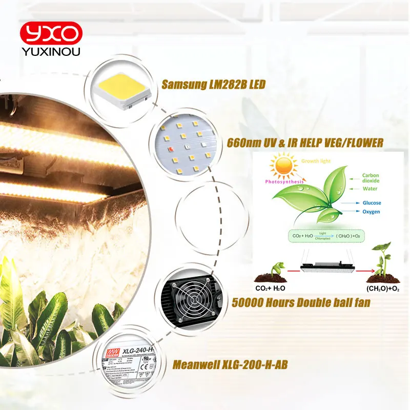 Светодиодные лампылампы для выращивания растений, Meanwell, 200 Вт, Samsung, LM301H, полного спектра, с регулируемой яркостью
