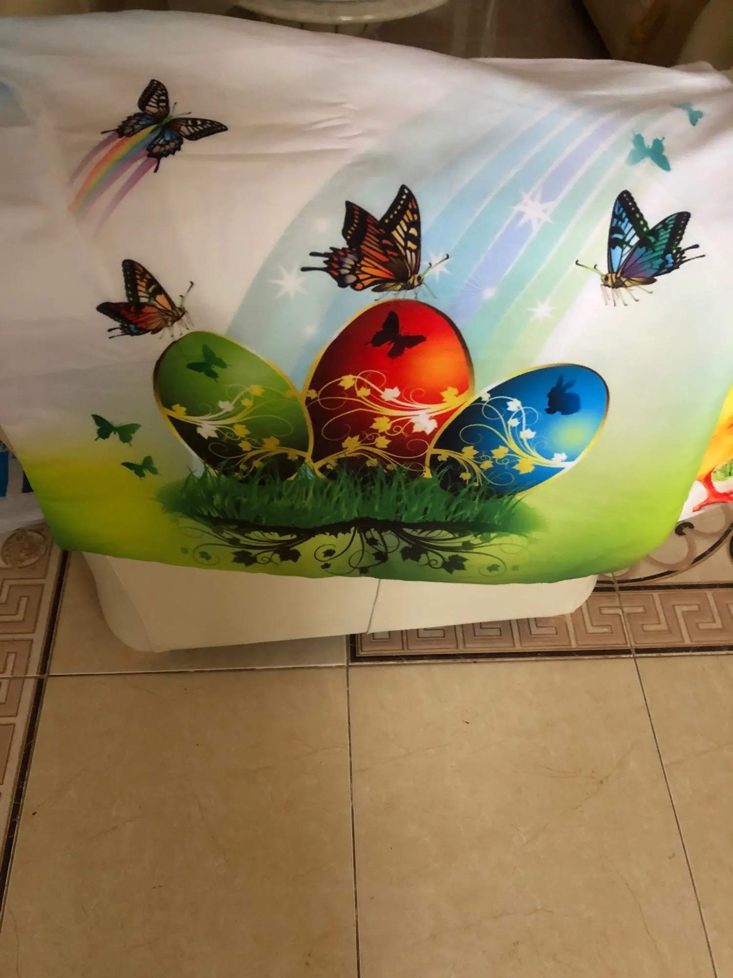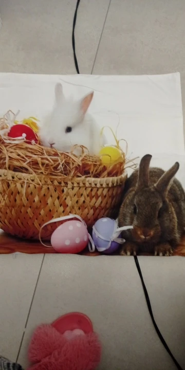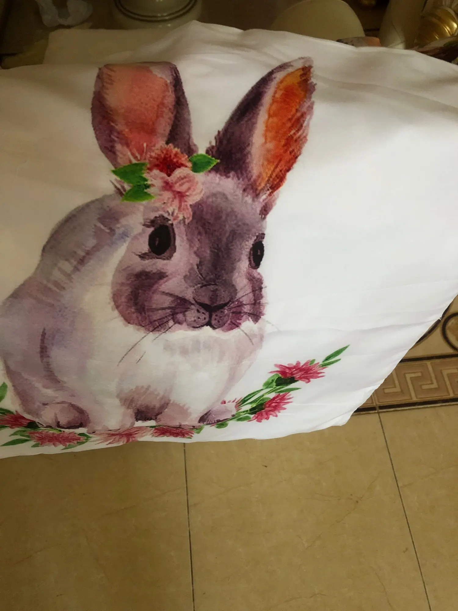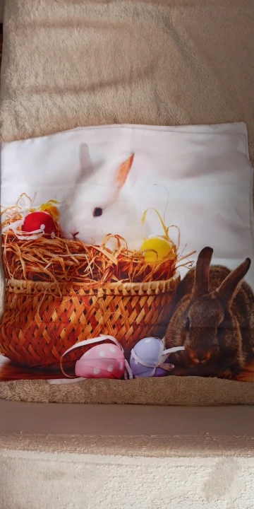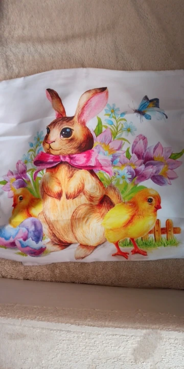 Очень хорошая подушка, когда Пасха прибывает. Белая и мягкая ткань и изображение очень четкое. Я люблю это!