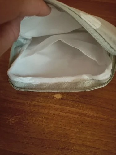 Идеальное качество швов! Цвет вживую нежнее, приятнее. Если выбираете, где заказать. Берите здесь. Ткань, приятная на ощупь. Не просвечивает. Внутри карманчик для ежедневных прокладок или тампонов. Можно использовать как аптечку. Отличный органайзер! Спасибо, продавец!