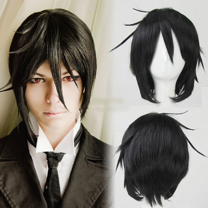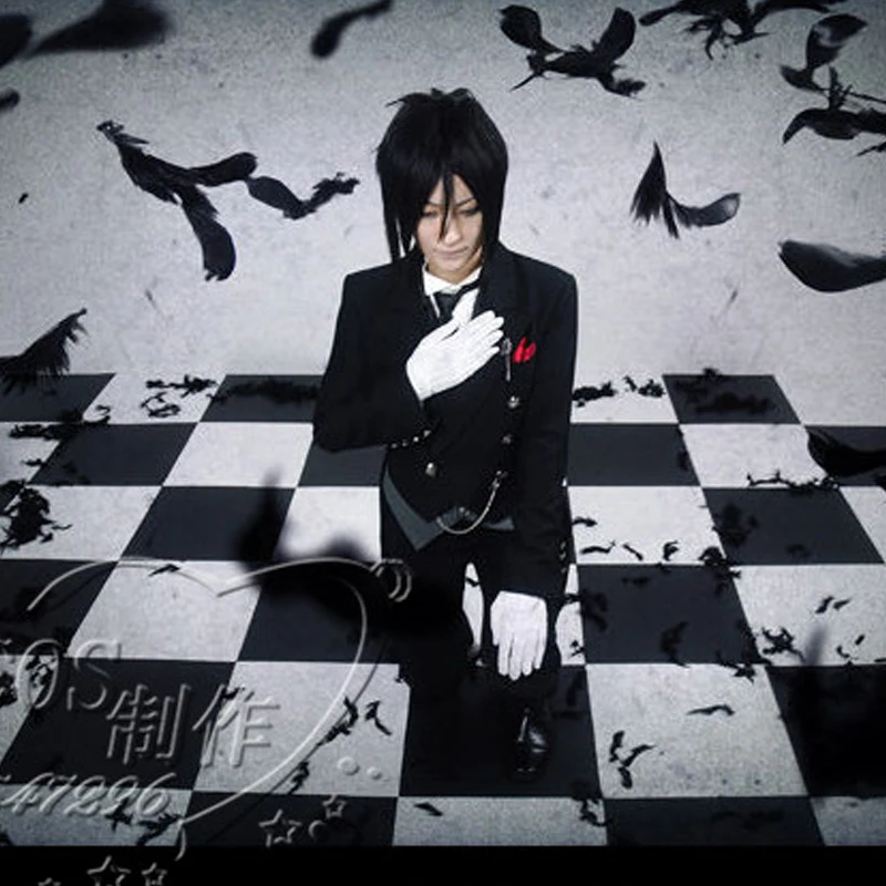 Парик мужскойженский из аниме Черный Дворецкий, костюм для косплея Себастьяна михаэлиса курошицуджи, униформа черного цвета, одежда на Хэллоуин, костюмы