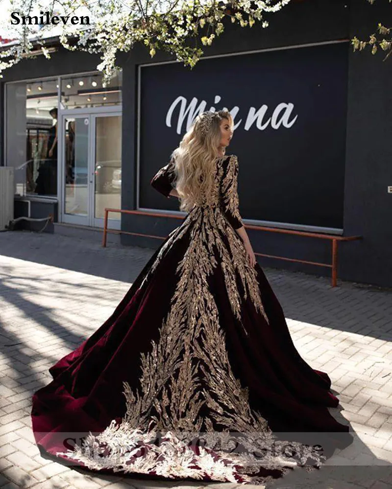 Бархатное вечернее платье Smileven, бордовое, с длинным рукавом, с ...
