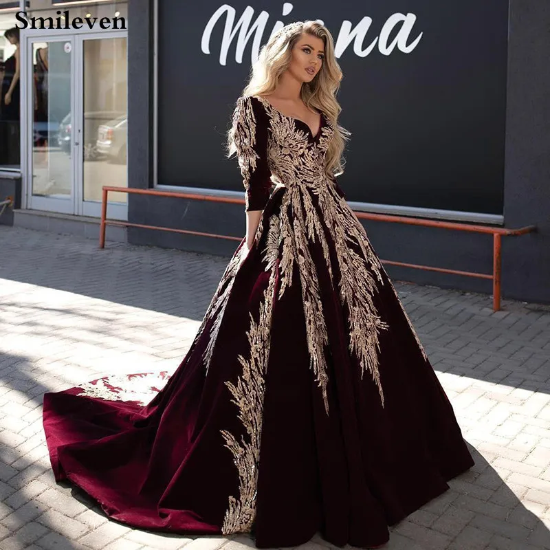 Smileven фиолетовые вельветовые кафтан арабские вечерние платья сек...