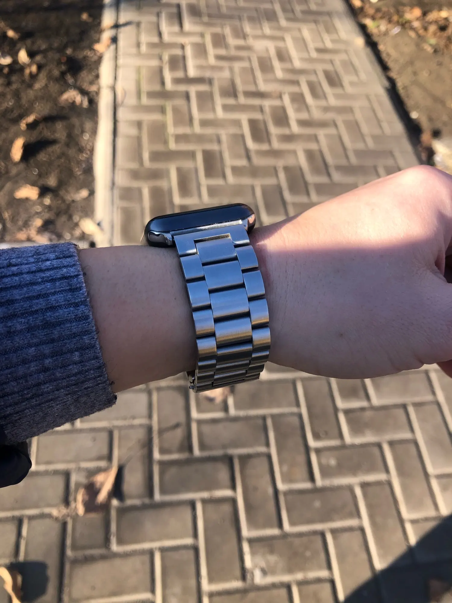 Очень очень Топ! Еще раз купил! Крепкий и стильный! Простая разборка для стандартного размера, однако может быть небольшая клавиша для дополнительного процесса... мои Apple Watch изготовлены из стали и идеально сочетаются, выглядят оригинально! Гораздо лучше, чем силикон, и более безопасно в случае кражи нержавеющей стали и не ломается легко