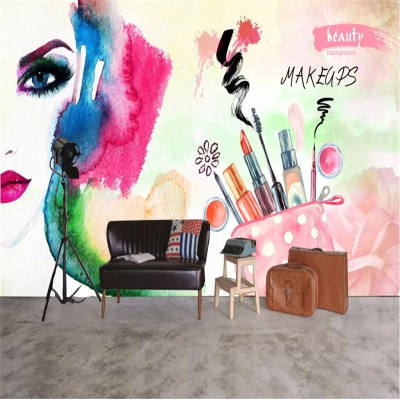 На заказ акварельный макияж студия салон красоты большой 3D настенной бумаги косметика магазин промышленного декора фон обои 3D