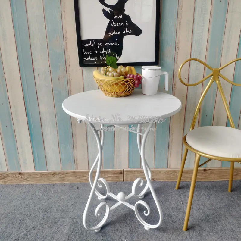 Европейский маленький столик с железными ножками, Диванный круглый журнальный столик для гостиной, простой прикроватный столик, для балкона, Ins деревянный чайный столик