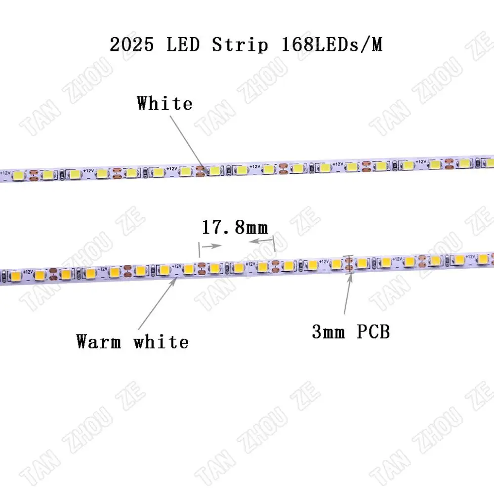 Гибкая светодиодная лента, 3 мм, PCB, высокая яркость 5 м 2520 2025 SMD 168led sM 840Led s5m, нейтральный белый, теплый белый, 12 В ip20