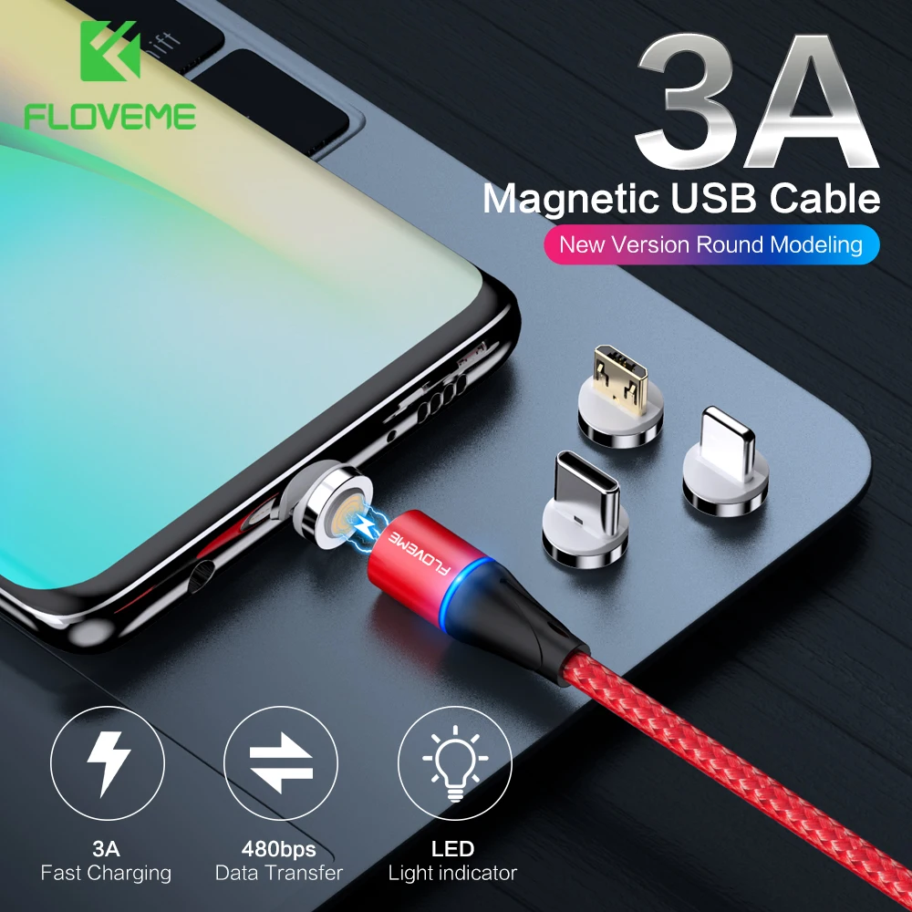 Магнитный зарядный кабель FLOVEME 3A Micro USB кабель для iPhone USB Type C адаптер для быстрой зарядки Магнитный зарядный кабель