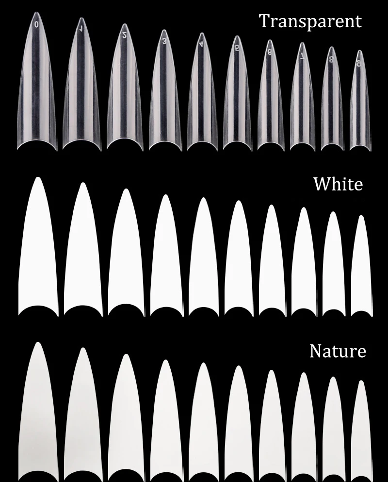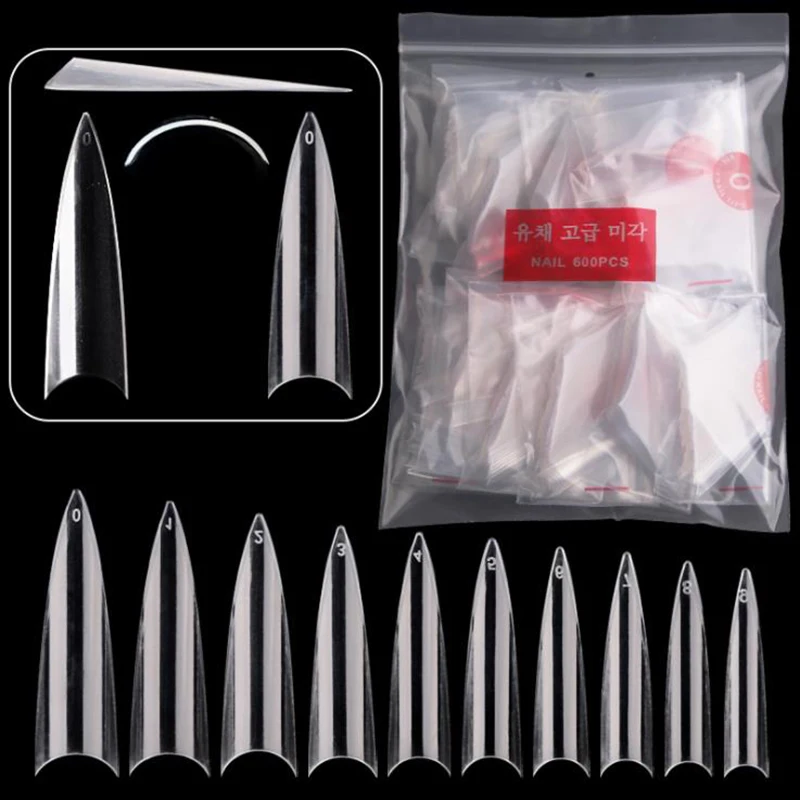 500 шт. Экстра длинные кончики для ногтей на шпильках, накладные кончики для ногтей, акриловый гель для салона, половинный кончик для ногтей, натуральный/прозрачный/белый поддельный УФ-гель для ногтей, инструмент