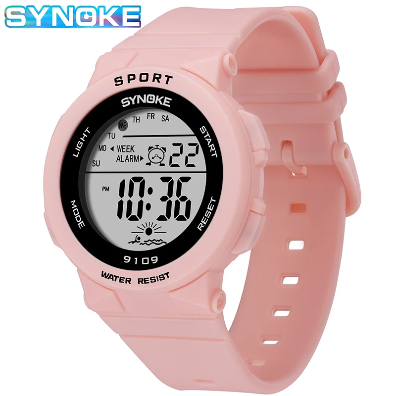 Часы SYNOKE женские цифровые, модные водонепроницаемые цифровые с хронографом и светодиодным дисплеем, с силиконовым ремешком