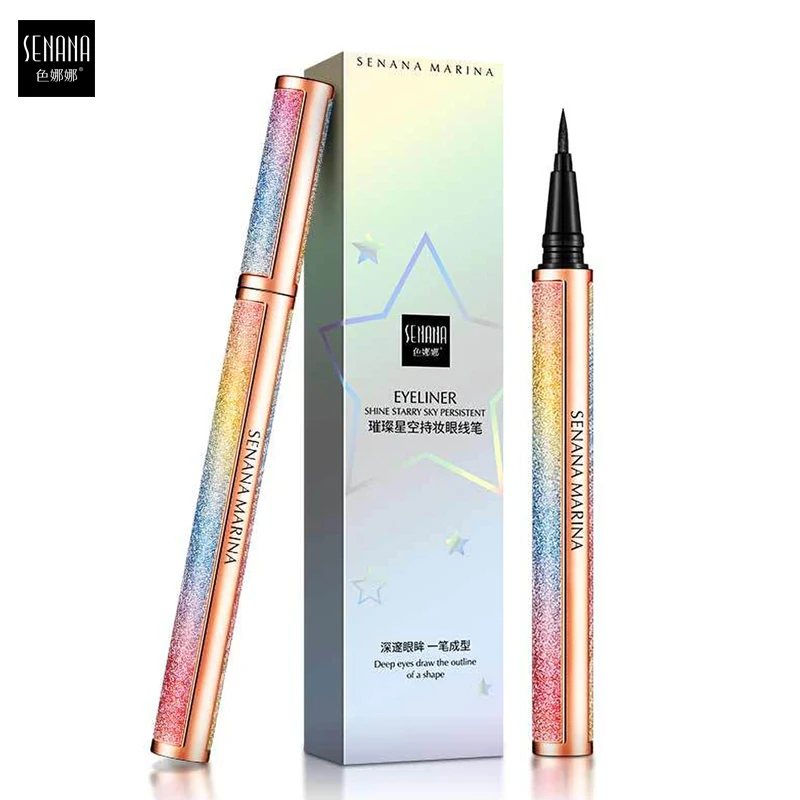Подводка для глаз SENANA 4D звездное небо, водостойкая, устойчивая к поту, жидкая подводка для глаз Косметика, макияж, черная, быстросохнущая, гладкая, 1 шт.