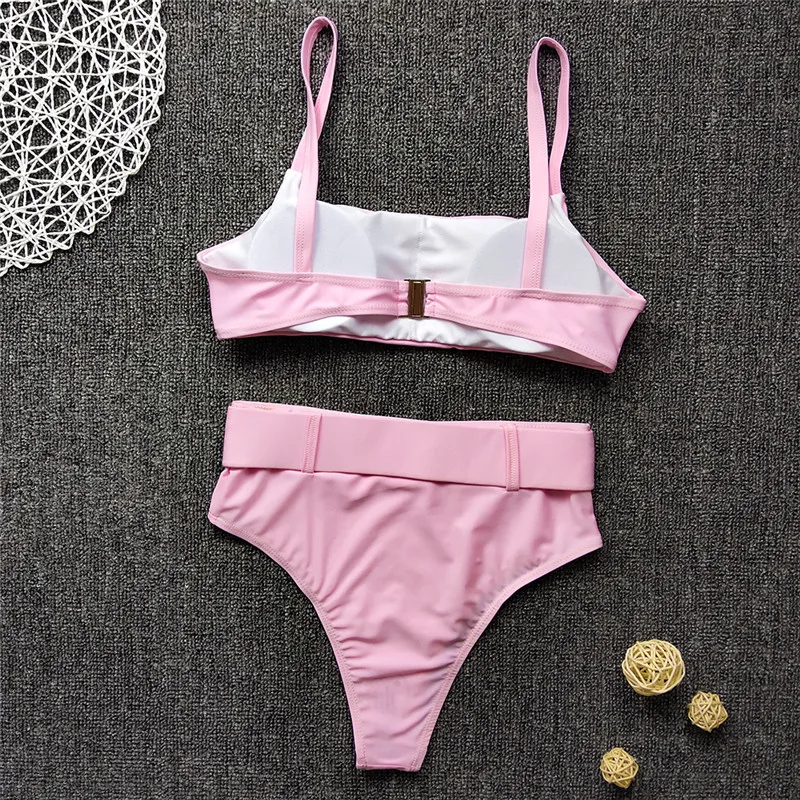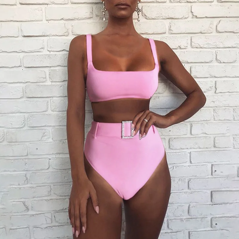 Новинка 2020, сексуальное бикини-бандо с высокой талией, купальник, женский купальник, Женский бразильский комплект бикини, купальный костюм с ремнем и бриллиантами