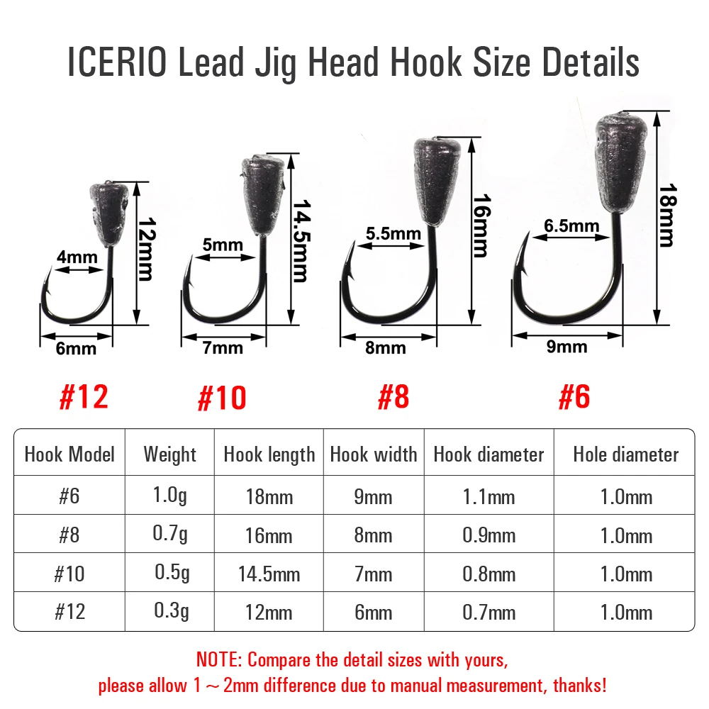 ICERIO 10 шт., мормышки зимняя приманка для подледной рыбалки, рыболовный крючок, свинцовая головка, рыболовные крючки из углеродистой стали, колючий крючок, Мягкая приманка в виде червей, крючки для карпа