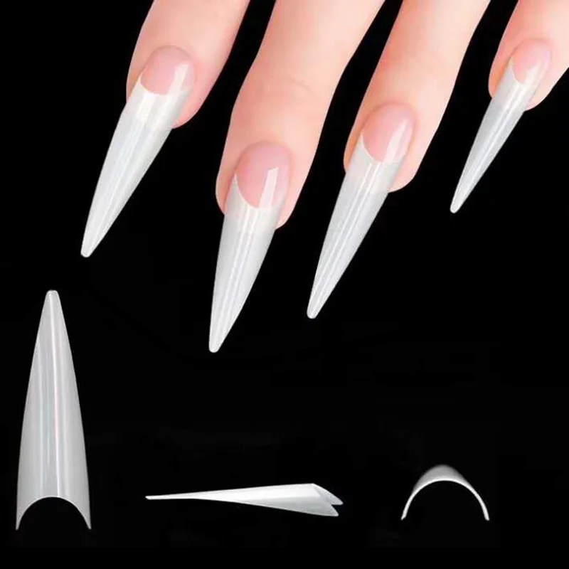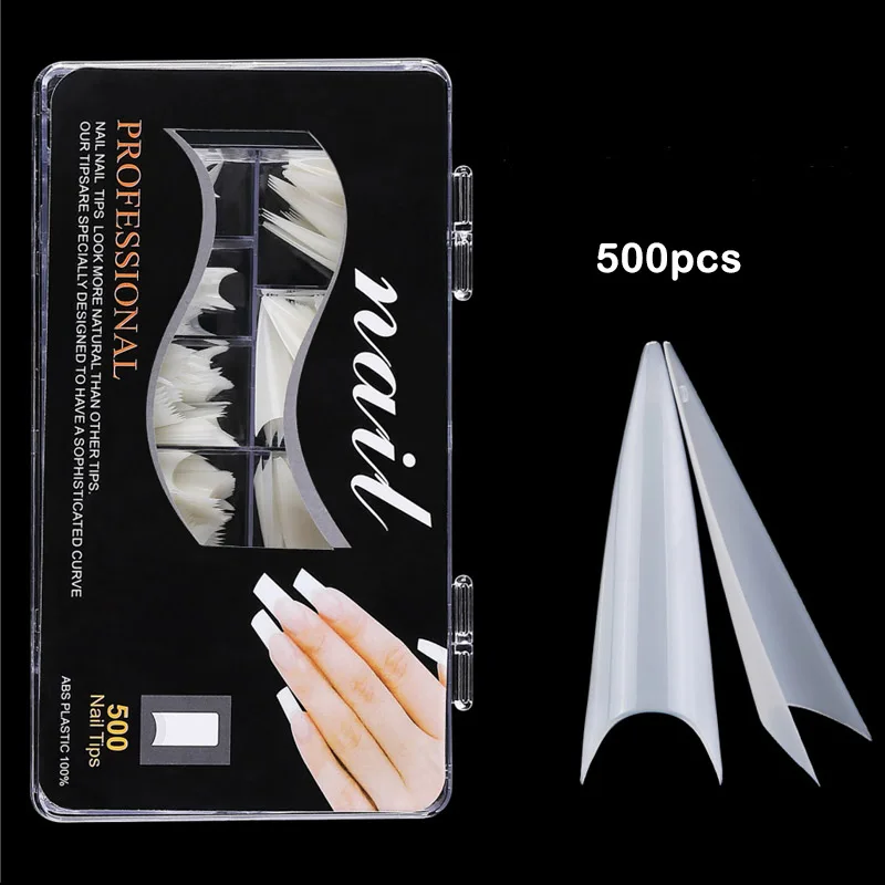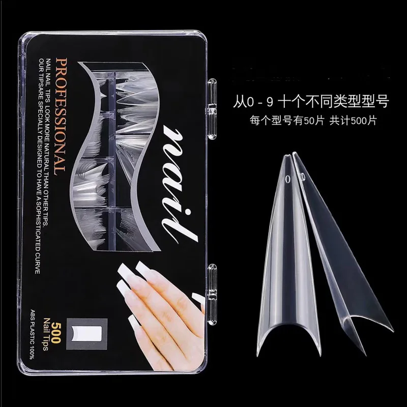 500 шт. прозрачные белые натуральные французские накладные акриловые ногти Типсы УФ-гель ультрагибкие-Размер #0- #9-в упаковке 1 коробка накладные ногти