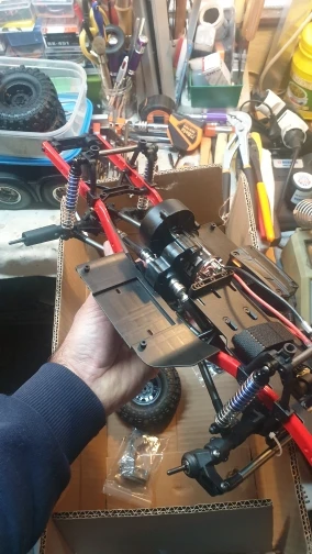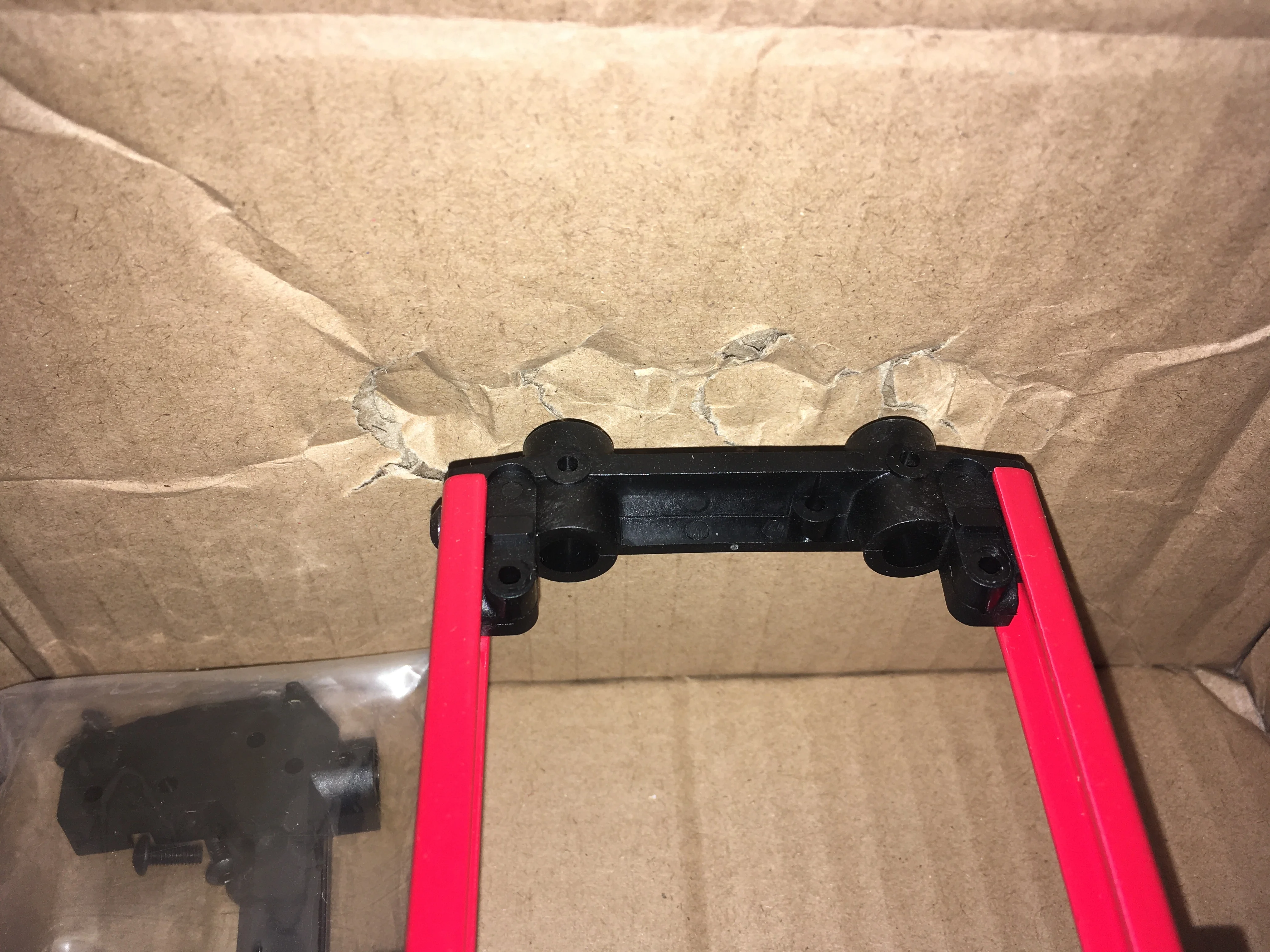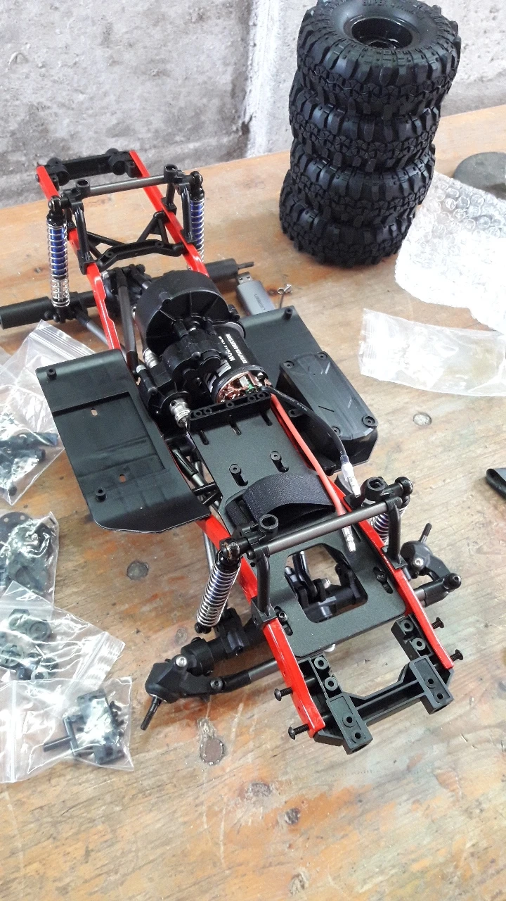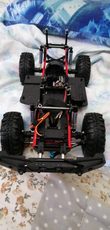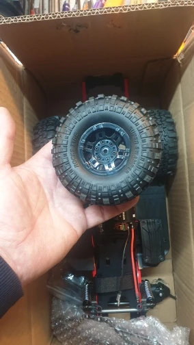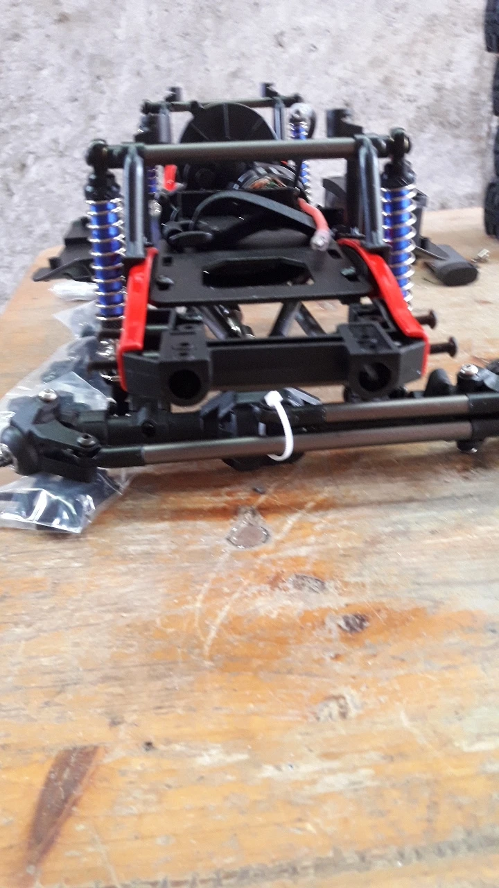 Шасси было незащищено в картонной коробке, которая была повреждена. Шариковый подшипник от Подвески переднего колеса разложен в коробке. Мяч головы шок имеет слишком много игр. Автомобиль можно проверить только как сервопривод рулевого управления и ESC, те же метки были заказаны, все еще не прибыл.