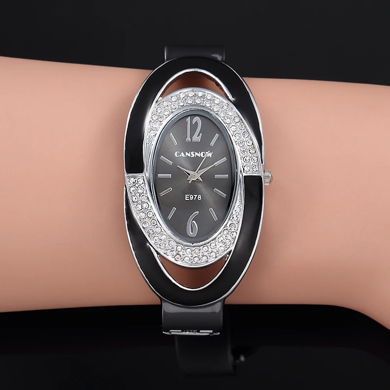 Женские и мужские креативные Стразы Часы-браслет Hodinky Женская браслет полный сталь овальная Форма часы подарок Ceasuri Zegarek Damski