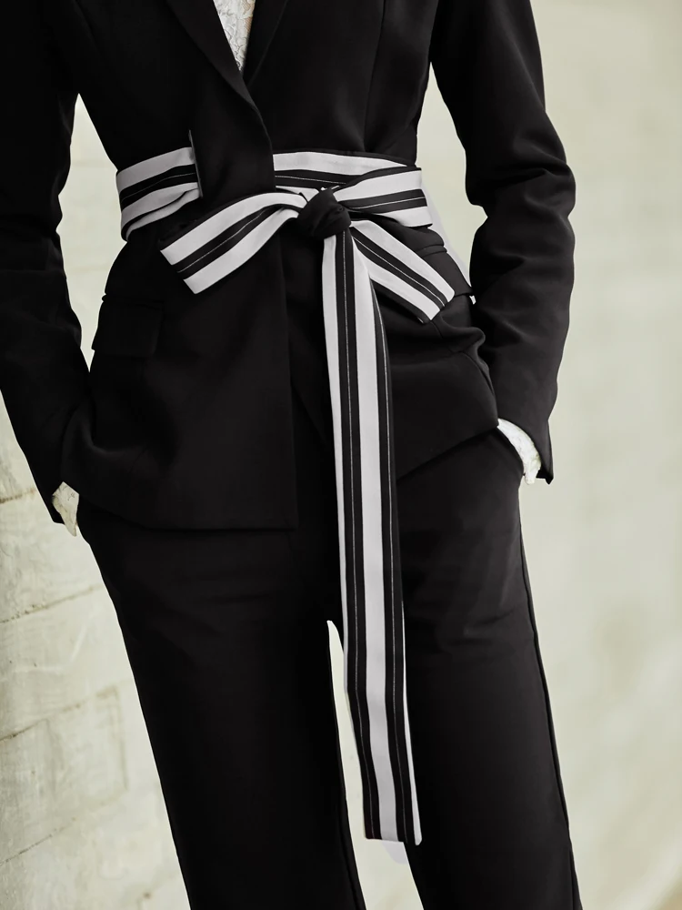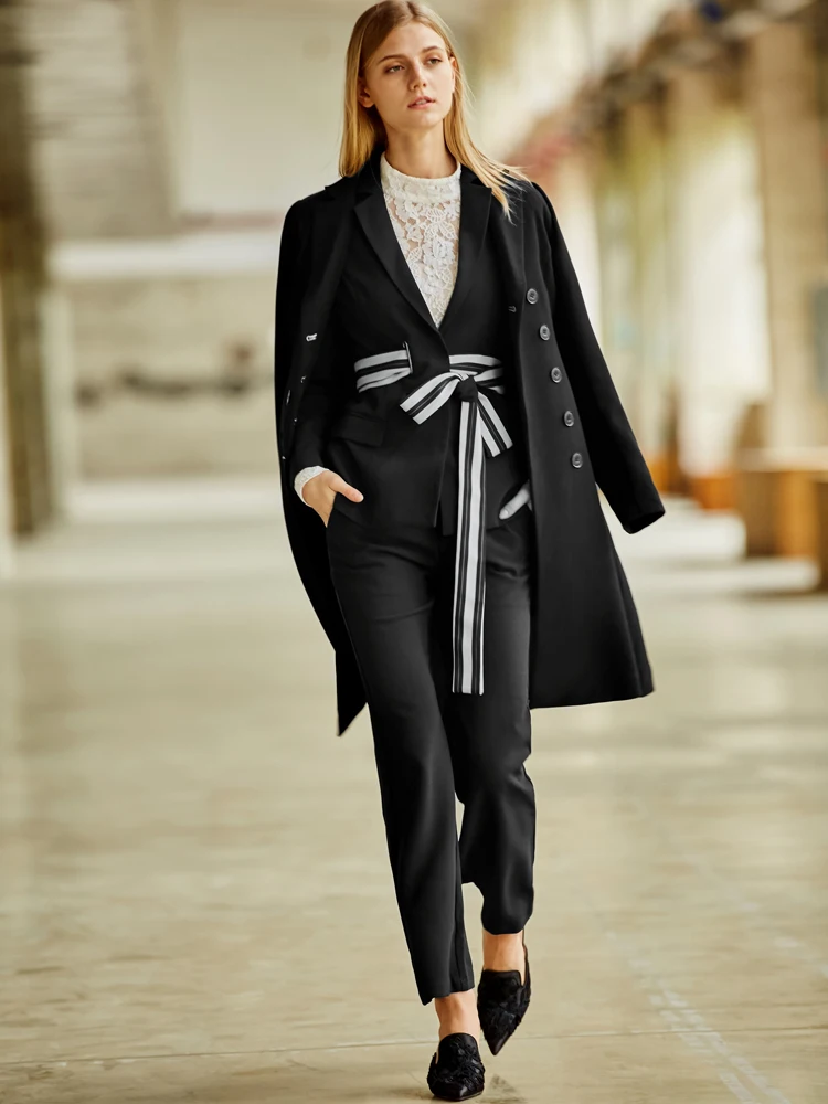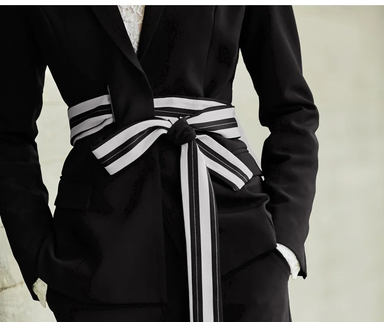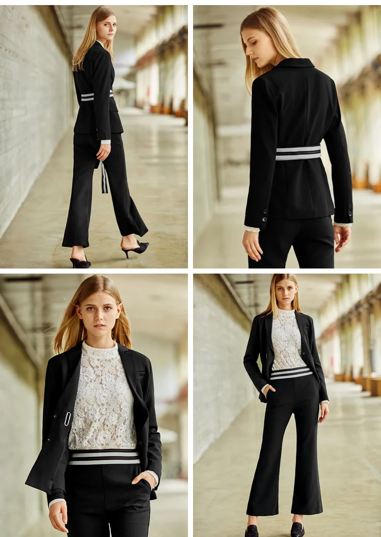 Amii весенние женские костюмы, офисный женский элегантный тонкий однотонный блейзер с лацканами, длинные брюки с высокой талией и поясом, Женский комплект из двух предметов 11870229