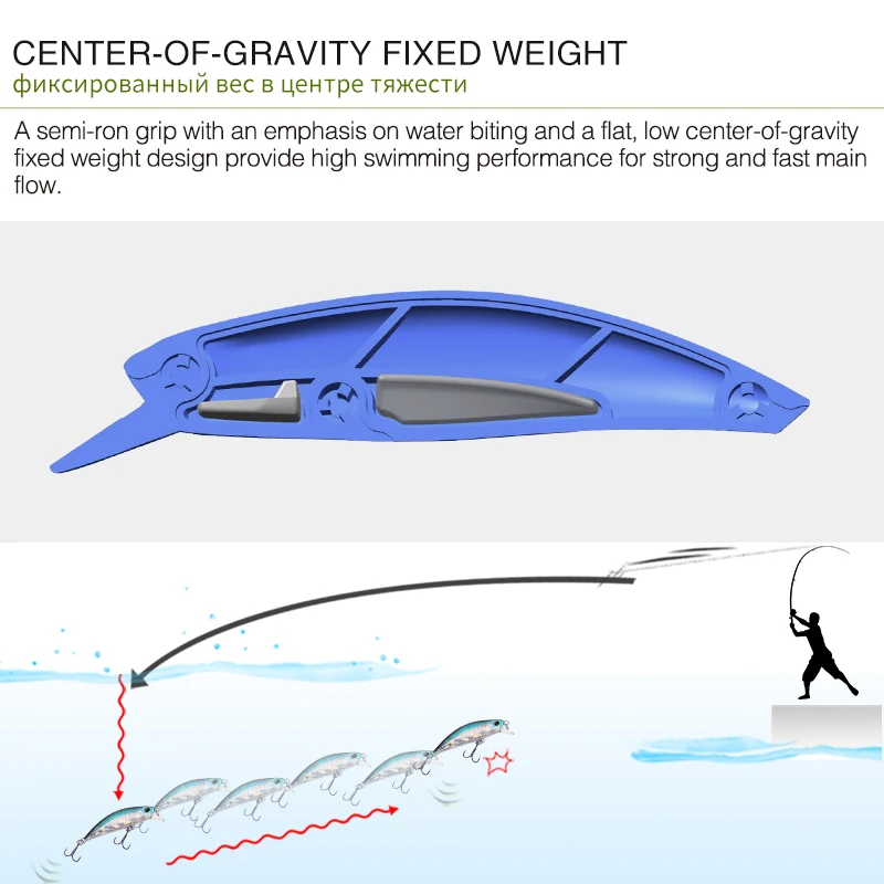 Его действие начинается быстро и способен организовать последовательное подергивание с работой стержня, в пределах короткого расстояния. Он также оснащен высокой плавательной эффективностью, способной справиться с постоянно усложняющимся током главного речного потока.