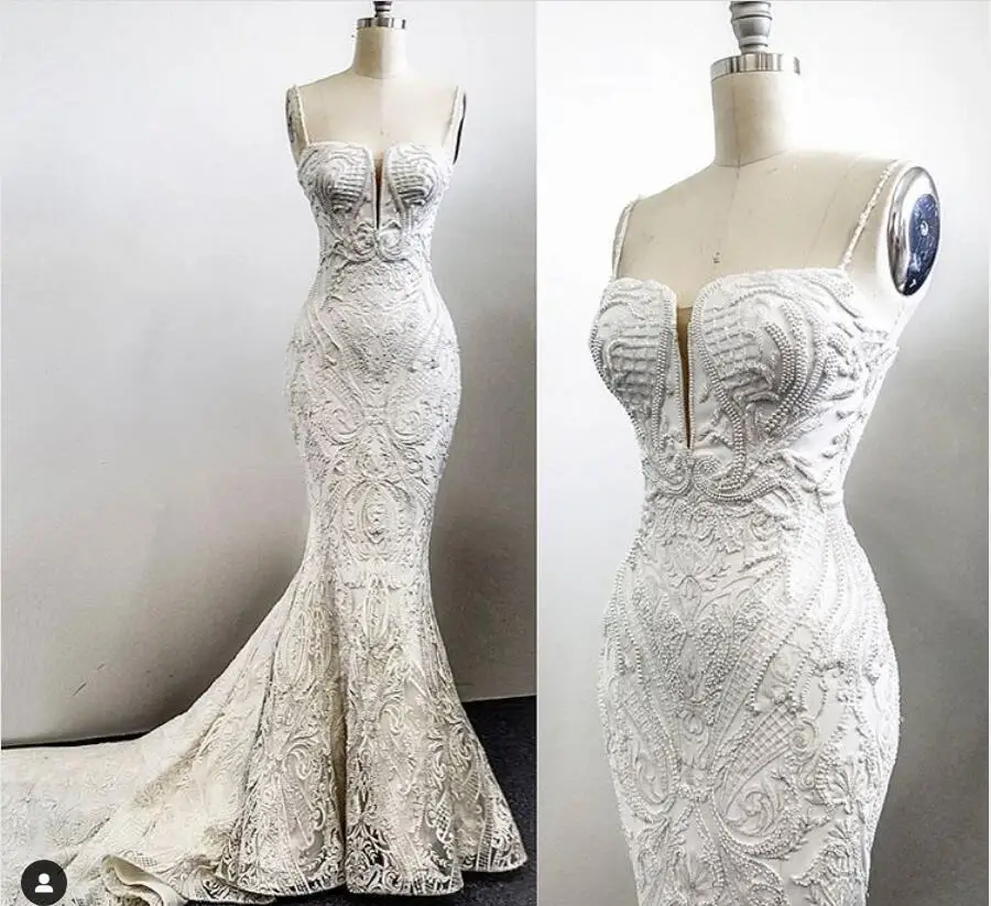 Кружевные свадебные платья с юбкой годе, элегантные сексуальные свадебные платья, свадебные платья с жемчугом