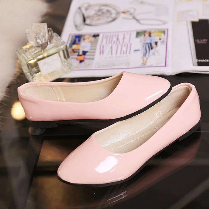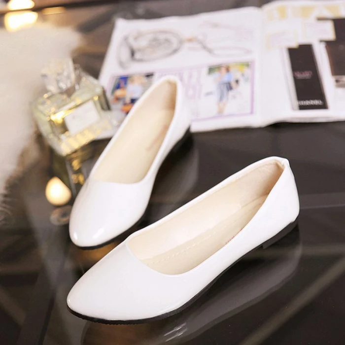Балетки женские из ПУ кожи, лакированные, закрытые, с круглым носко...