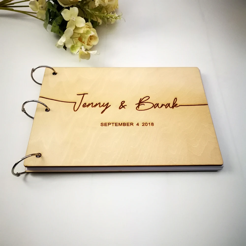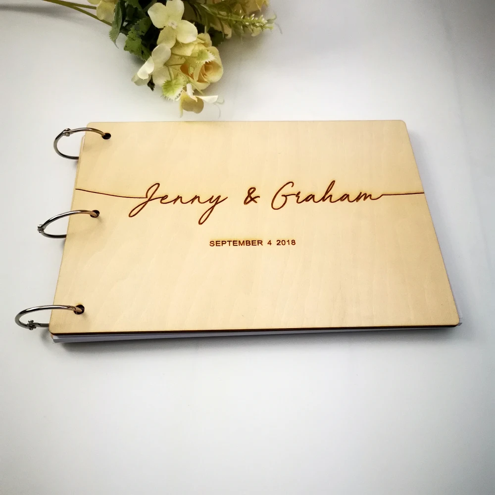 Пользовательские жениха и невесты имя и Дата деревянная каллиграфия Гостевая книга Персонализированные лазерной гравировкой свадебный альбом подарок для пары