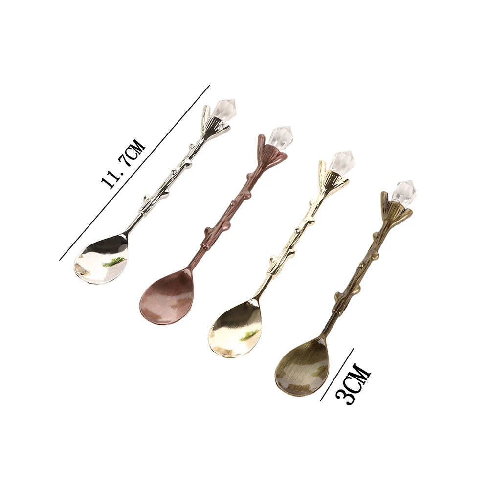 Винтажная кофейная ложка лесная ветка листья Милая чайная ложка Хрустальная молочная ложка для мороженого сахарного торта ложки, кухонные принадлежности