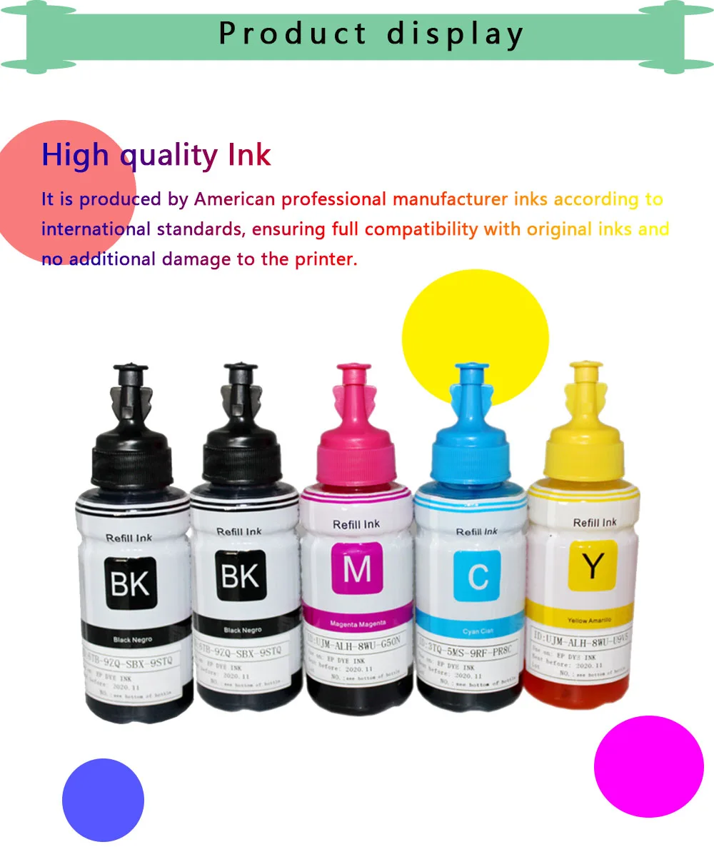 Набор чернил на основе красителя для Epson L100 L110 L120 L132 L210 L222 L300 L312 L355 L350 L362 L366 L550 L555 L566