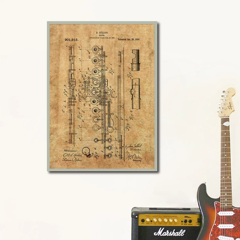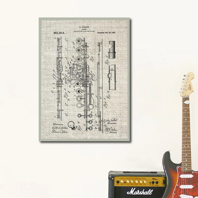 PurposeMusician Gift Flute Blueprint Art Painting Picture Home Decor