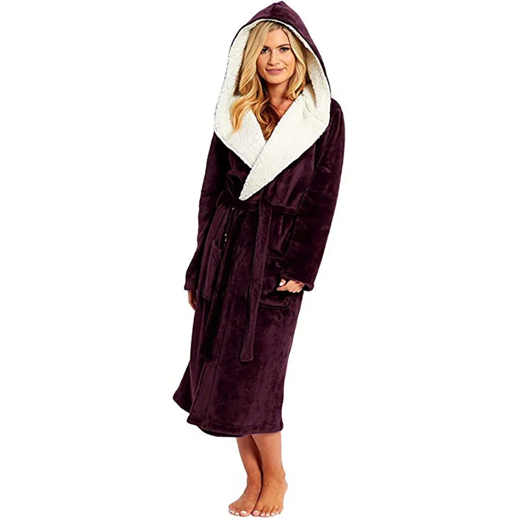 Женский мягкий Халат с капюшоном, зимний удлиненный халат с плюшевой подкладкой, домашняя одежда, теплые банные халаты, халаты, пальто