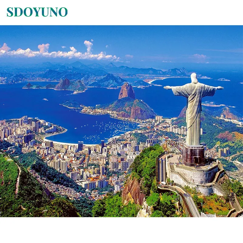 SDOYUNO 60x7 5 см Рисование по номерам DIY Rio de Janeiro бескаркасная краска по номерам пейзаж цифровая Краска на холсте