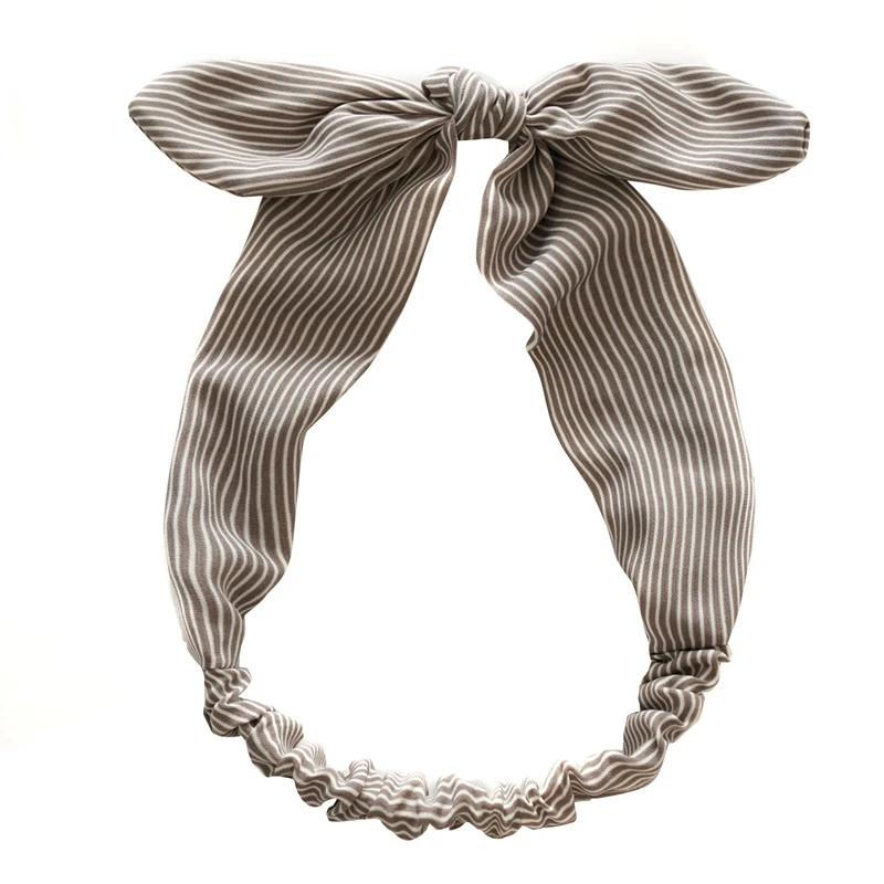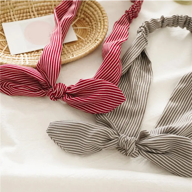 Повязка для волос Женская эластичная с принтом в полоску, тюрбан с завязанным бантом, аксессуары для волос, ободок с кроличьими ушами
