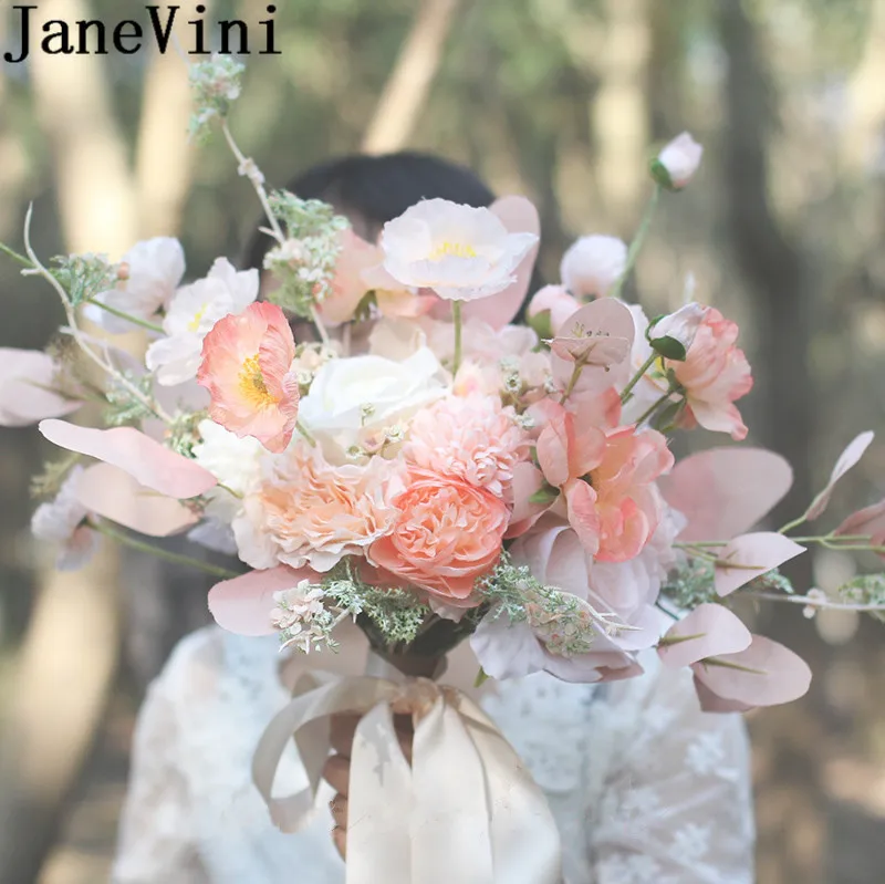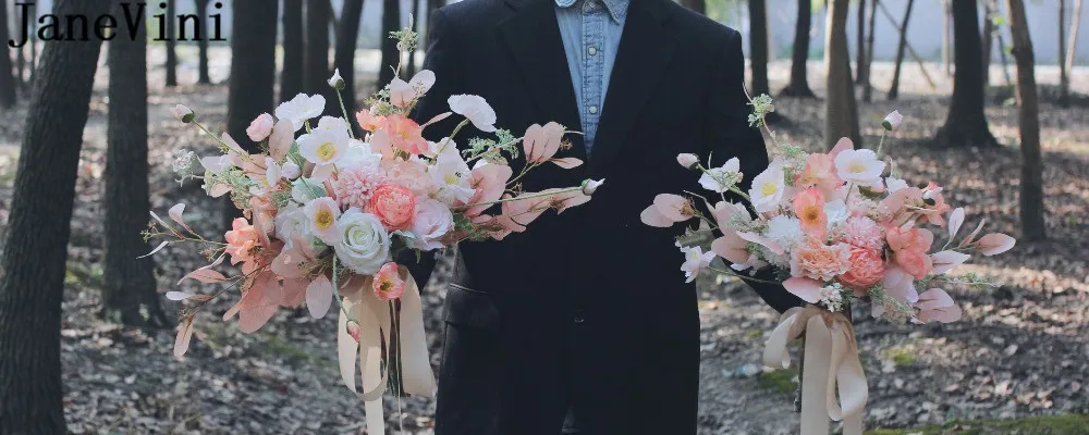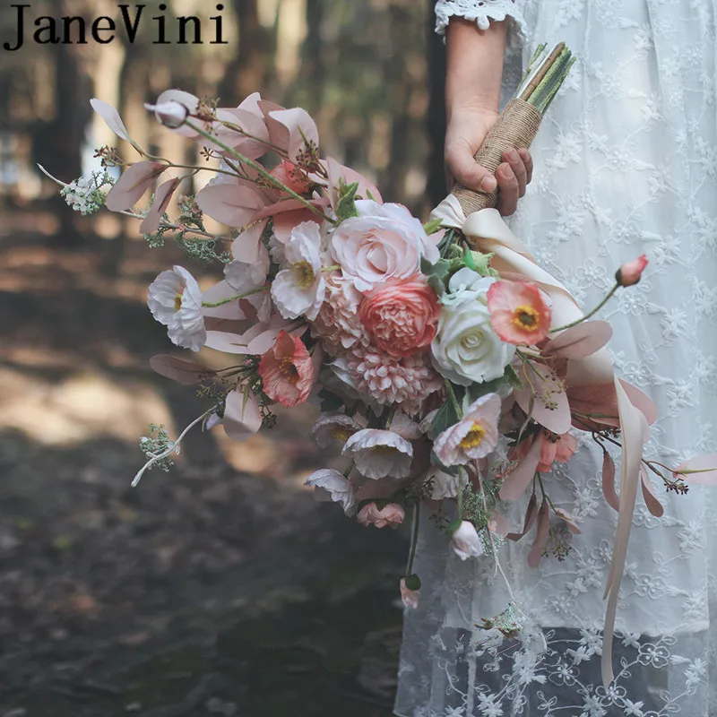 JaneVini Ins, цвета шампанского, розовый, искусственные подружки невесты, свадебные букеты, шелковые розы, листья, свадебные цветы, держатель для невесты, rosa flor