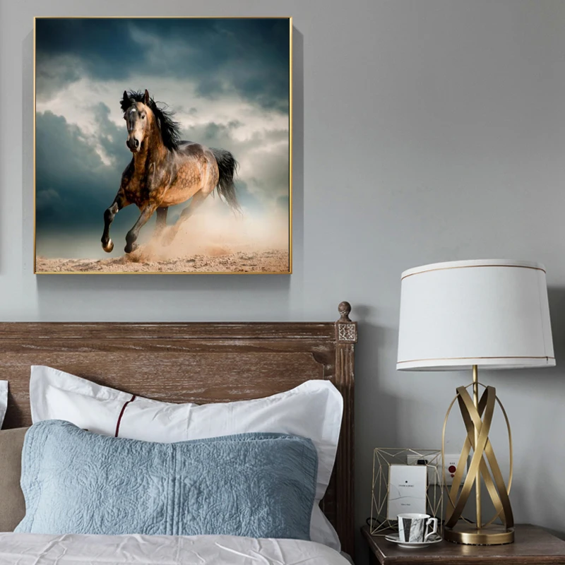 Современная искусственная живопись, Настенная картина, Картина на холсте бегущая лошадь, картина для гостиной, украшение для дома, квадраты, без рамки