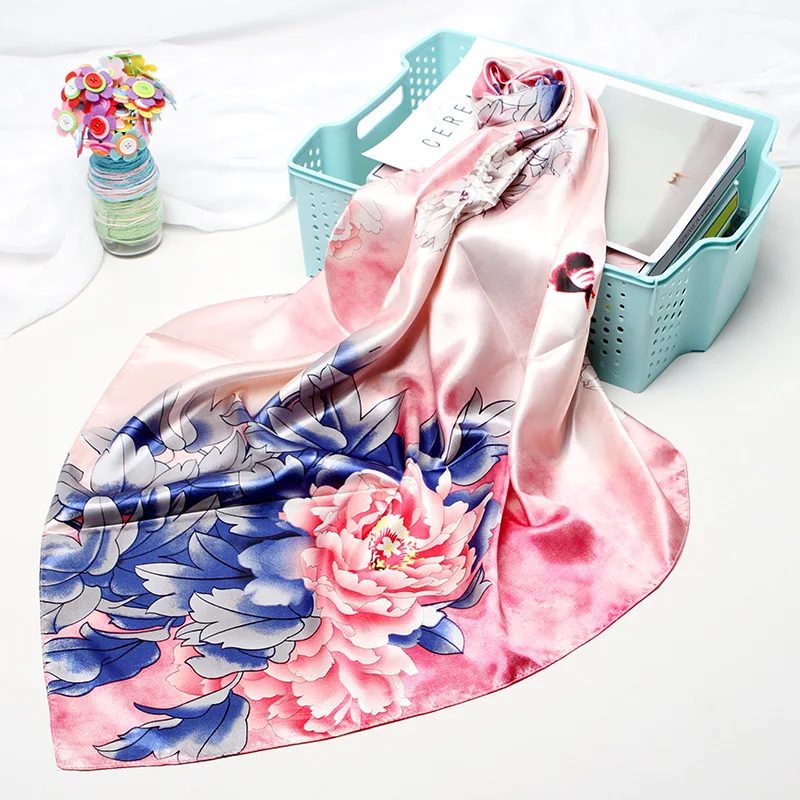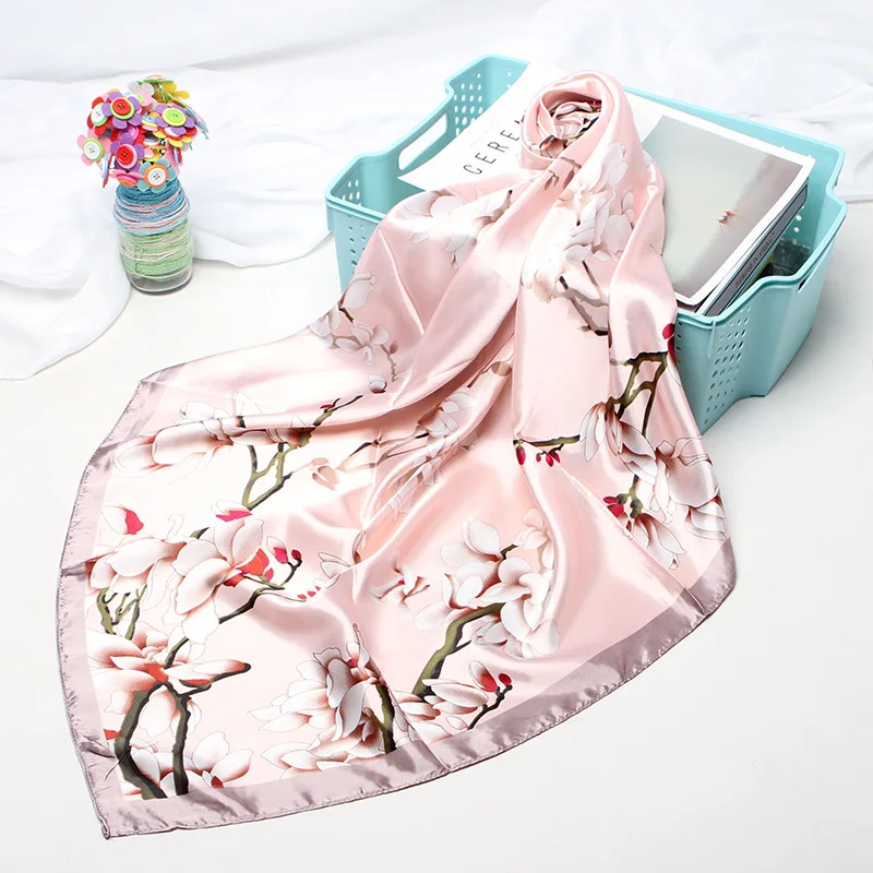 Модный Шелковый сатиновый хиджаб шарф для женщин Цветочный Принт шарф на голову Женский 90*90 см шали и шарфы для женщин 2020