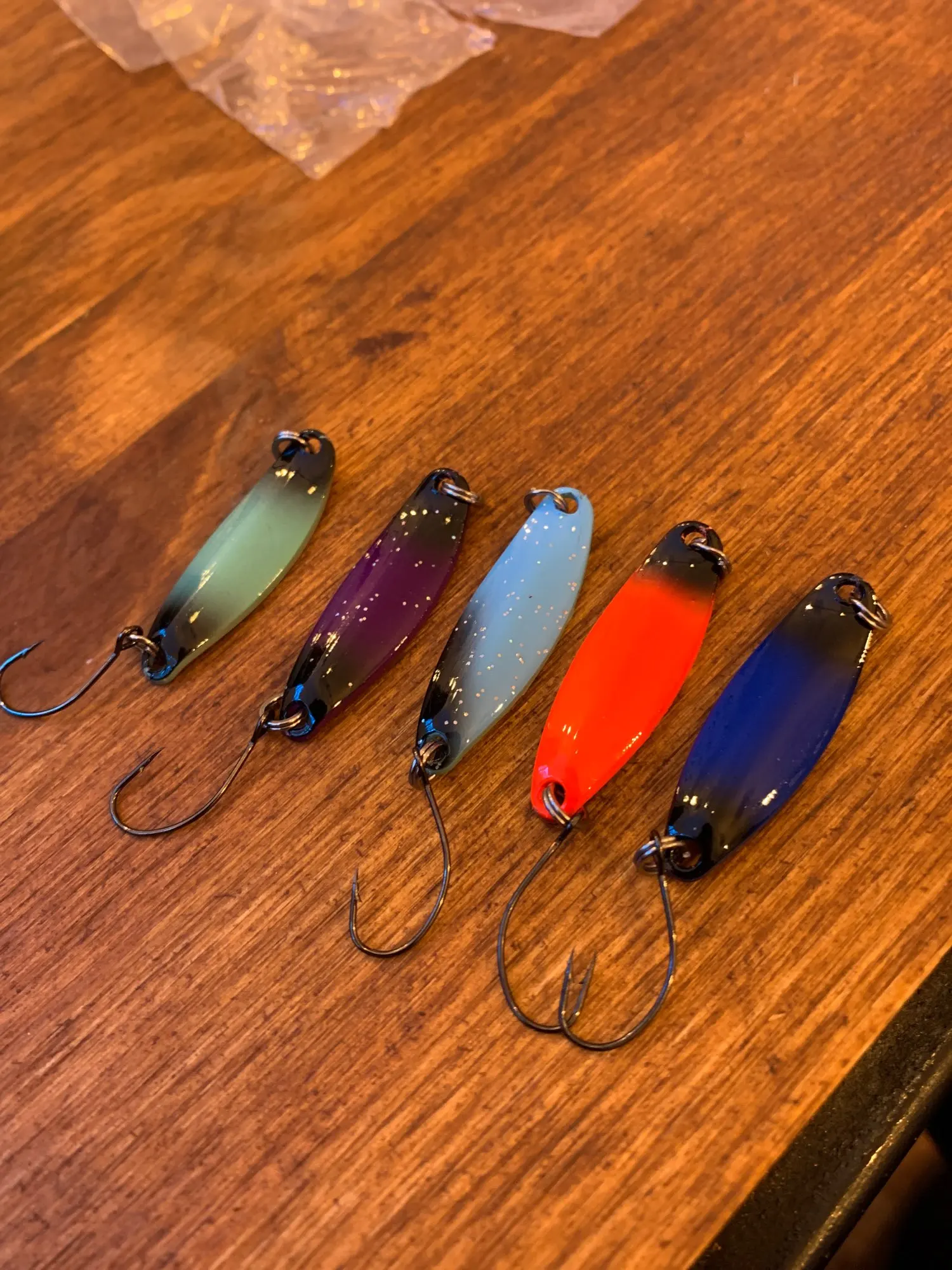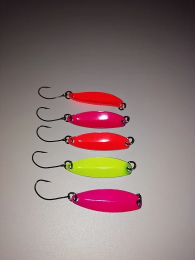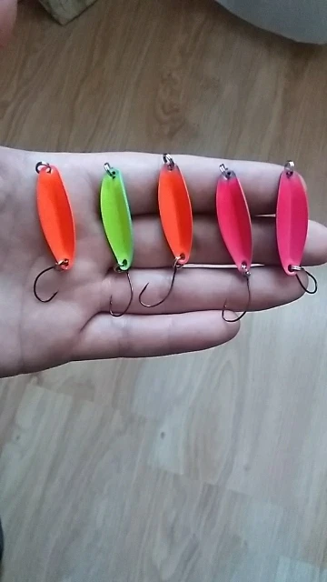 блесны отличные, окрашены с обоих сторон в разные цвета, крючки норм. рекомендую