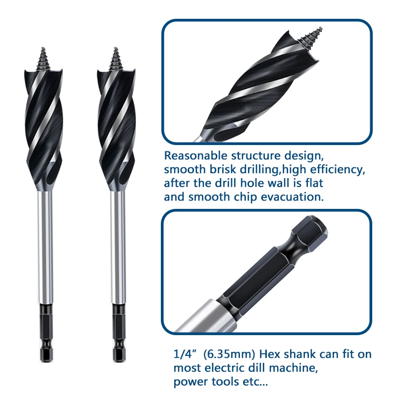 Сверло для резки по дереву, 1 шт., сверло типа шнек 6,35 мм, набор сверл с шестигранным хвостовиком для открывания отверстий по дереву