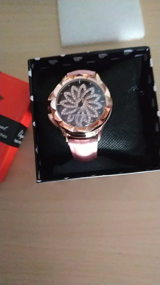 2020 Для женщин Стразы часы леди вращения платье часы марки реальные кожаный ремешок большой циферблат браслет наручные часы со стразами