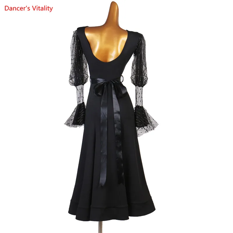 Женское платье для бальных танцев, Сетчатое платье с длинным рукаво...
