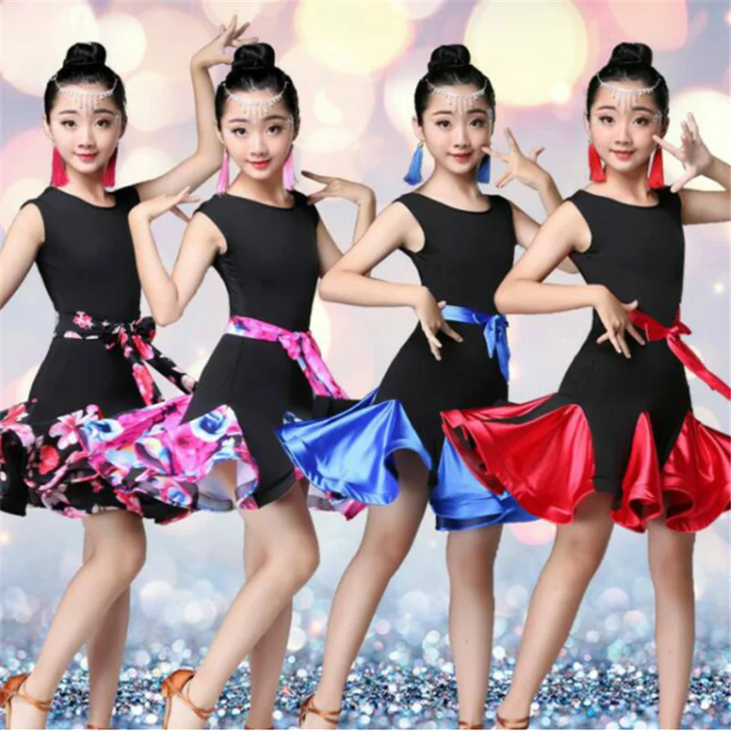 Платье с оборками для девочек в цветочек, одежда для бальных танцев, латинских танцев, для соревнований, для девочек, для детей, для сальсы, Танго, ча-ча, юбка для тренировок