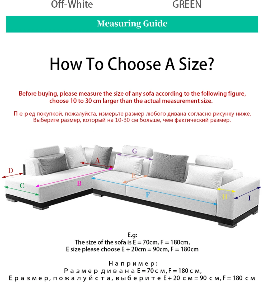 Рекомендуется выбирать больший размер при покупке, а излишки могут быть вставлены в зазор дивана, чтобы играть нескользящий фиксирующий эффект. Инструкции по стирке:Используйте нейтральное моющее средство, ручная стирка при температуре воды 30 градусов или мягкая машинная стирка, избегайте стирки при высоких температурах и длительного замачивания, не используйте жесткую щетку, чтобы вытереть плитку или высушить, не отбеливать/сушить/подвергать воздействию Примечание:Перед покупкой, пожалуйста, измерьте размер любого дивана в соответствии со следующей фигурой, выберите фактический размер измерения.От 10 до 30 см больше, чем
