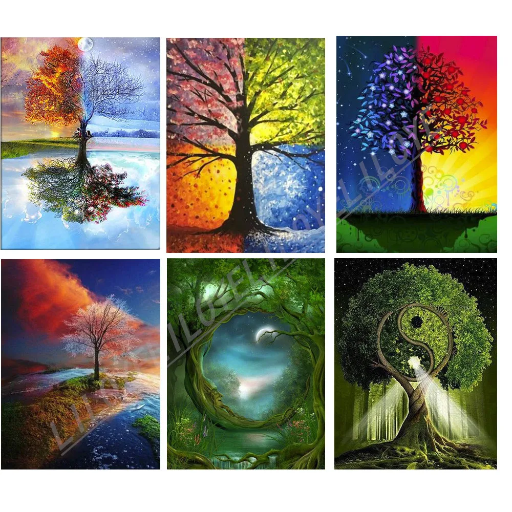 Четырехсезонная Алмазная 5D картина сделай сам с деревом, пейзаж, полная выкладка, вышивка крестиком, мозаика, украшение для дома FG1803