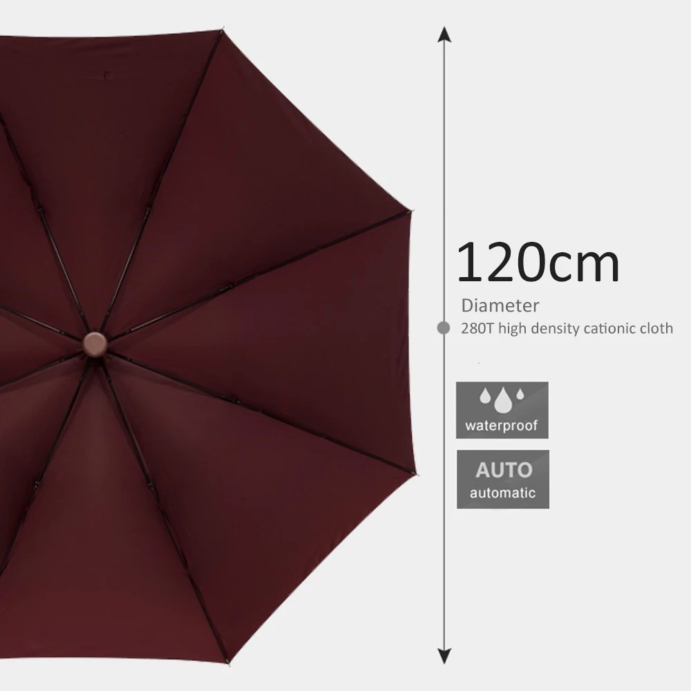 Большой зонт Parachase 120 см, мужской автоматический зонтик с защитой от ветра, усиленный, Длинные зонтики в деловом стиле, деревянная ручка, для игры в гольф