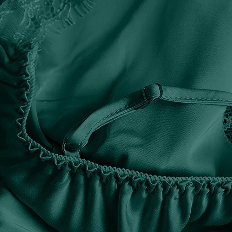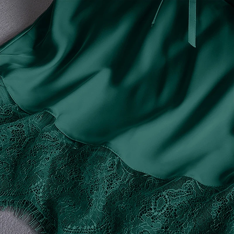 Пижама женская шелк кружево сатин с V-образным вырезом, пижама с ба...