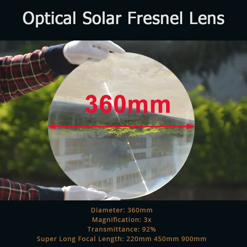 360 мм большая оптическая пластиковая Солнечная линза Френеля PMMA 450 900 мм с длинным фокусным расстоянием, концентратор солнечной энергии, большая линза для лица