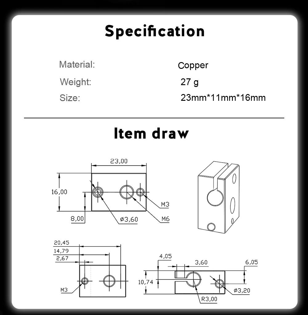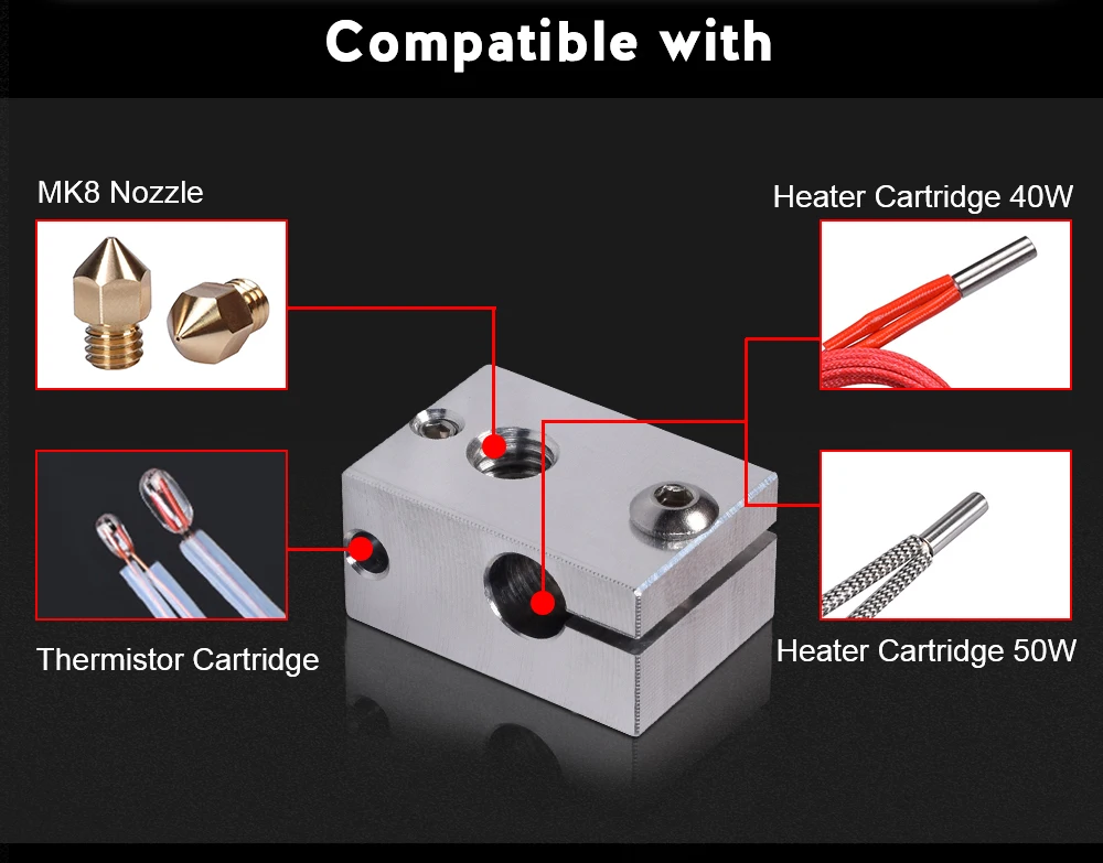 Оригинальный нагревательный блок V6 из меди для E3D V6 Hotend, нагревательный блок V6, сопло, силиконовый Носок, титановый экструдер, детали для 3D-принтера