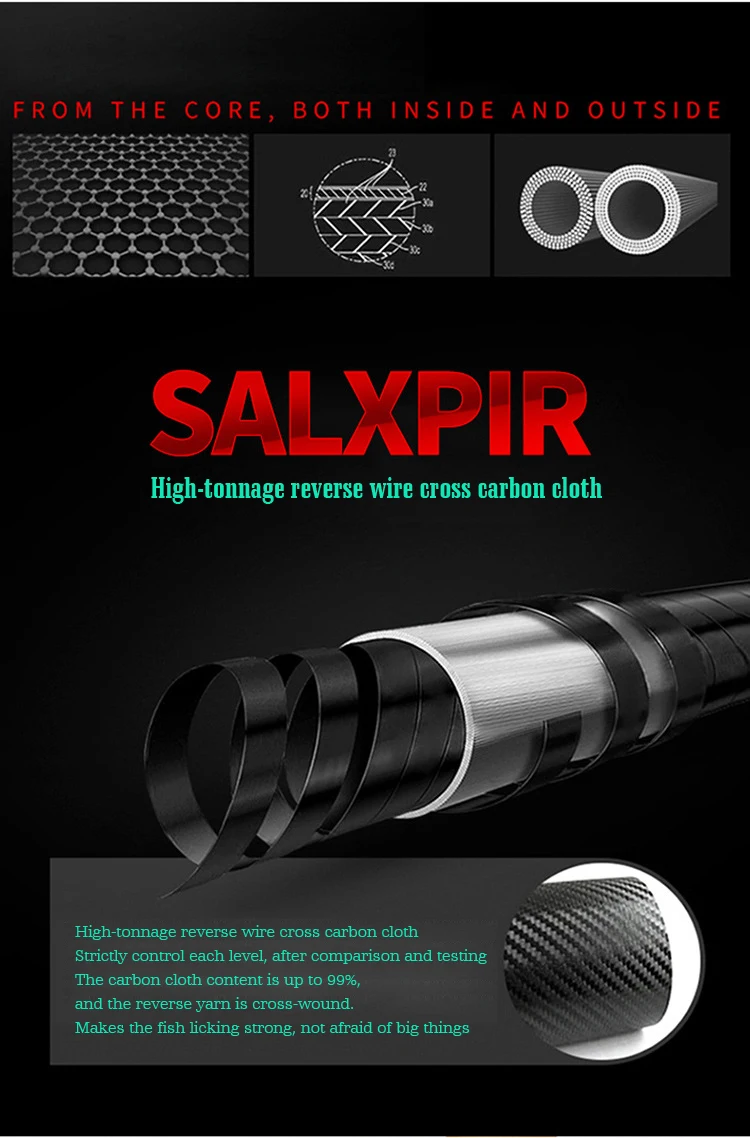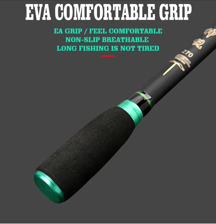 Особенности: 1 углеволоконный материал, мощный, чувствительный, но светильник. 2 Высокопрочное и долговечное катушечное сиденье, более прочное и нескользящее. 3 высококачественных керамических направляющих кольца, минимизируют трение линии, эффективно рассеивают тепло, обеспечивают плавное отбрасывание при извлечении. 4. Защита окружающей среды и Нетоксичная крышка из АБС-пластика защищают направляющие от вреда. 5 ручек EVA высокой плотности, отвечает эргономичному дизайну, удобные и Нескользящие. 6 вы получите товар с индивидуальным мешком для удочек. Комплектация: 1 шт. * удочка для приманки