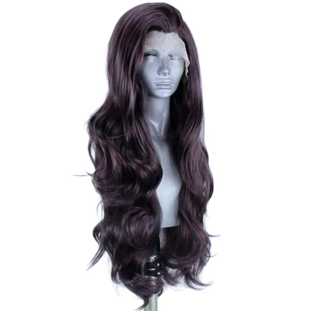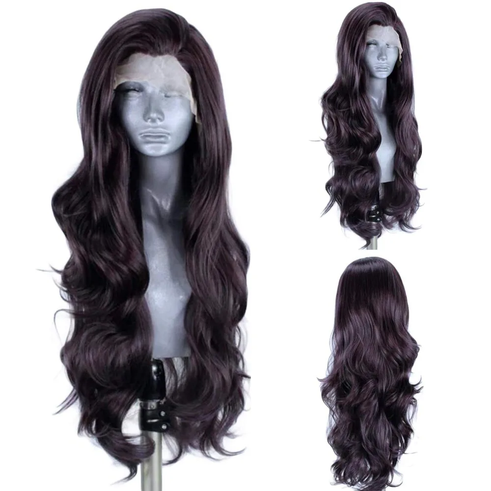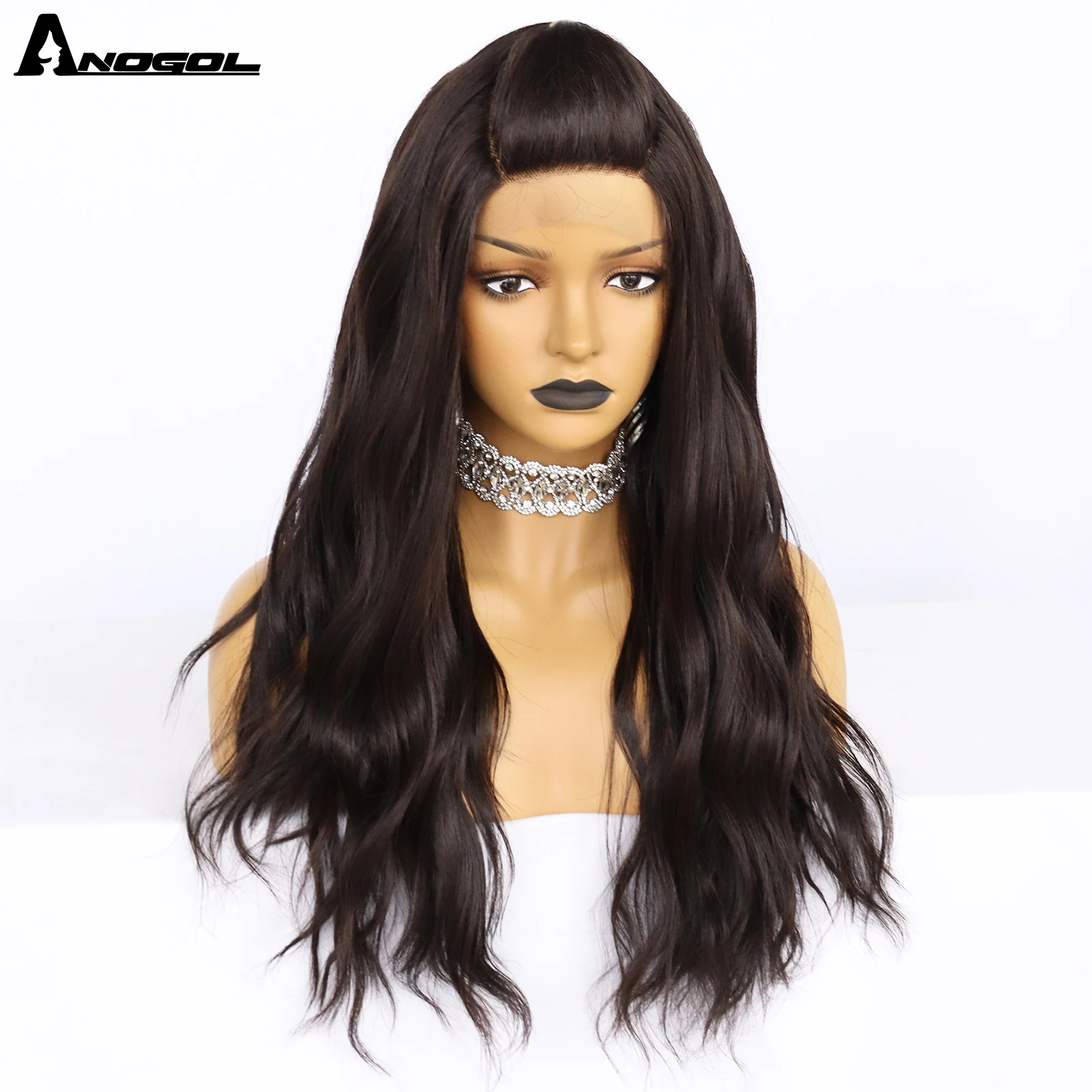 ANOGOL #4 натуральные черные синтетические кружевные передние женские длинные волнистые термостойкие парики для футуристических волос