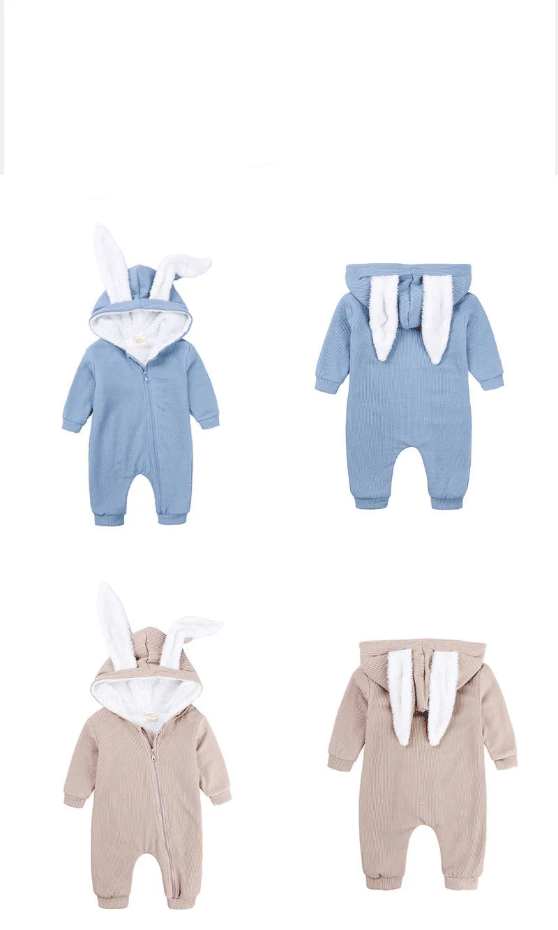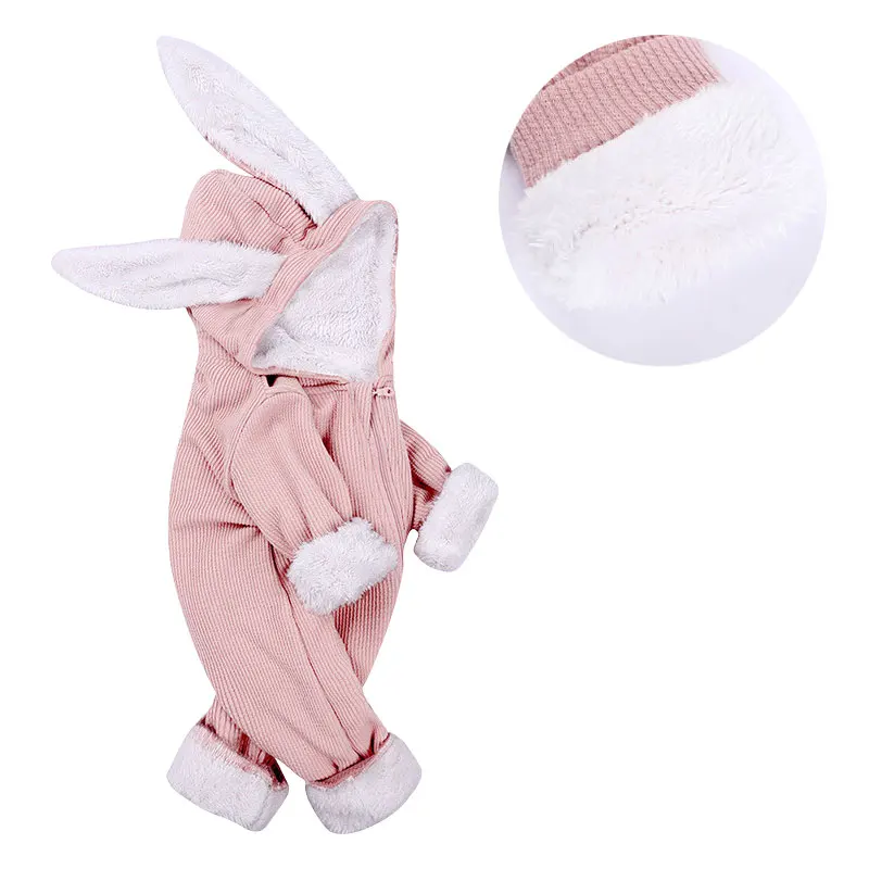 Комбинезон для мальчиков и девочек, утепленный хлопковый комбинезон для ползания с ушками кролика, на молнии